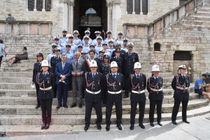 Il sindaco, come prima la comandante, si è detto emozionato per la genuinità che traspare dagli sguardi dei nuovi agenti: «Oggi credo che sia un bel momento perché ci consente di capire quale bene abbiamo a disposizione essendo il Corpo di polizia locale uno dei più antichi d’Italia con una grande storia alle spalle». Romizi ha poi invitato tutti a guardare con ammirazione il Gonfalone della città, bellissimo ed arricchito da una medaglia che pochi Comuni possono vantare perché conquistato con merito nel Risorgimento. «Chiedo ai nuovi agenti di tenersi stretta quella bellezza che oggi i vostri occhi mostrano ed il ricordo della giornata che stiamo trascorrendo, anche quando arriveranno i momenti difficili e di sconforto. Vi invito ad indossare le vostre divise con l’obiettivo di servire il Paese e la comunità: sono convinto che lo farete con competenza, umanità, passione, onore e fermezza». La cerimonia si è chiusa con la consegna da parte delle Autorità ai 18 nuovi agenti di un piccolo dono, ossia un Grifo da appuntare sulle divise sul lato sinistro, quello del cuore. Ecco i nomi dei 18 nuovi agenti: Pasquale Campece, Andrea Menciotti, Federico Sabatini, Erica Bellini, Valeria Mercanti, Debora Lini, Serena Arcioni, Alfredo Verde, Fabio Ragnacci, Leonardo Filippetti, Federico Grelli, Andrea Mastriforti, Alessandro Amadio, Simone Berrettoni, Giovanni Garofalo, Alessandro Verbena, Francesco Mercorio, Dario Barcaccia.