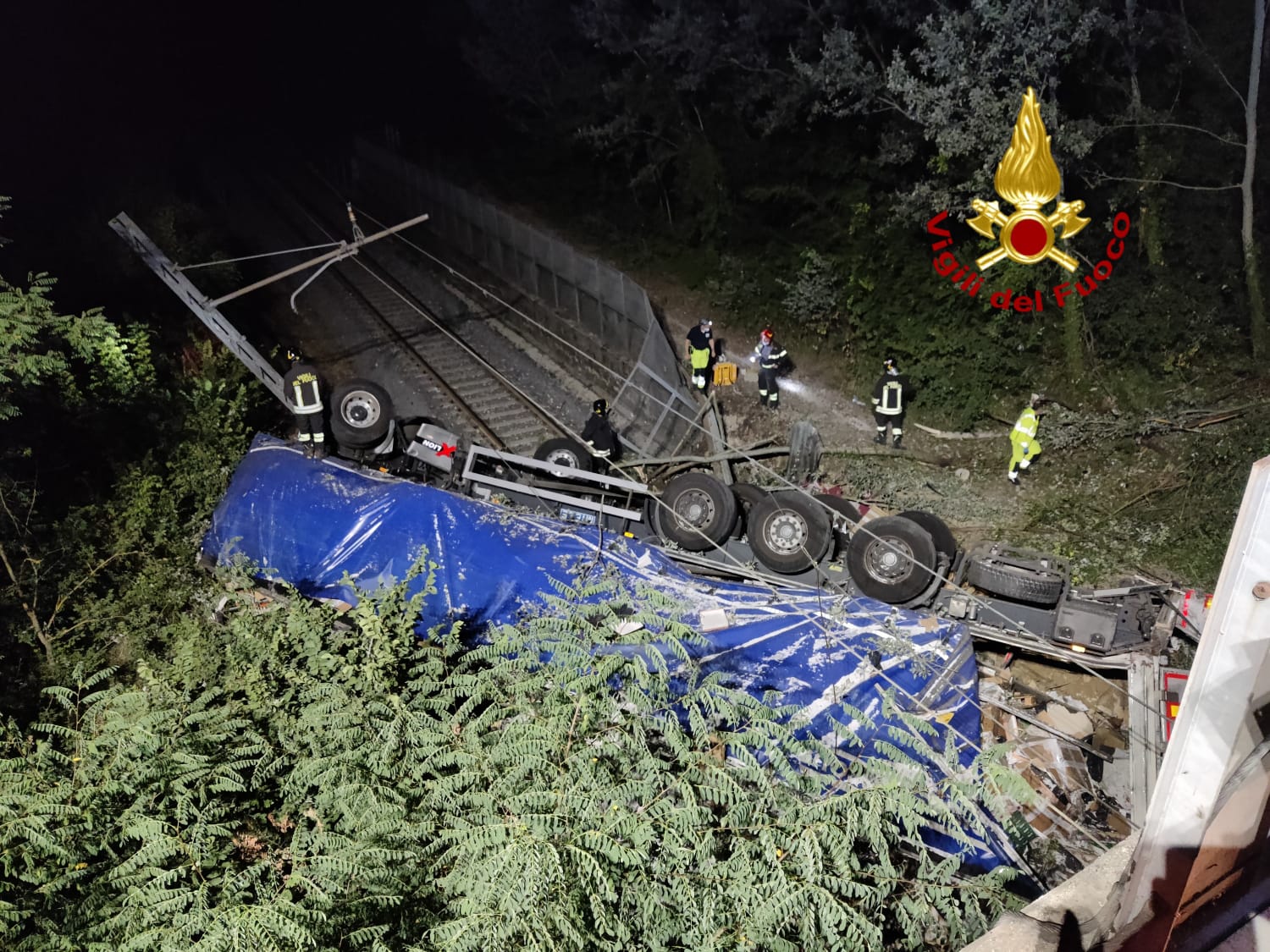 PERUGIA – Due ore. Due ore di fila. Tanto c’è voluto, stanotte, per liberare il camionista rimasto intrappolato nell’abitacolo del suo Tir, all’altezza di Collestrada, dopo essere uscito di strada e finito, letteralmente, sui binari della ferrovia sottostante.