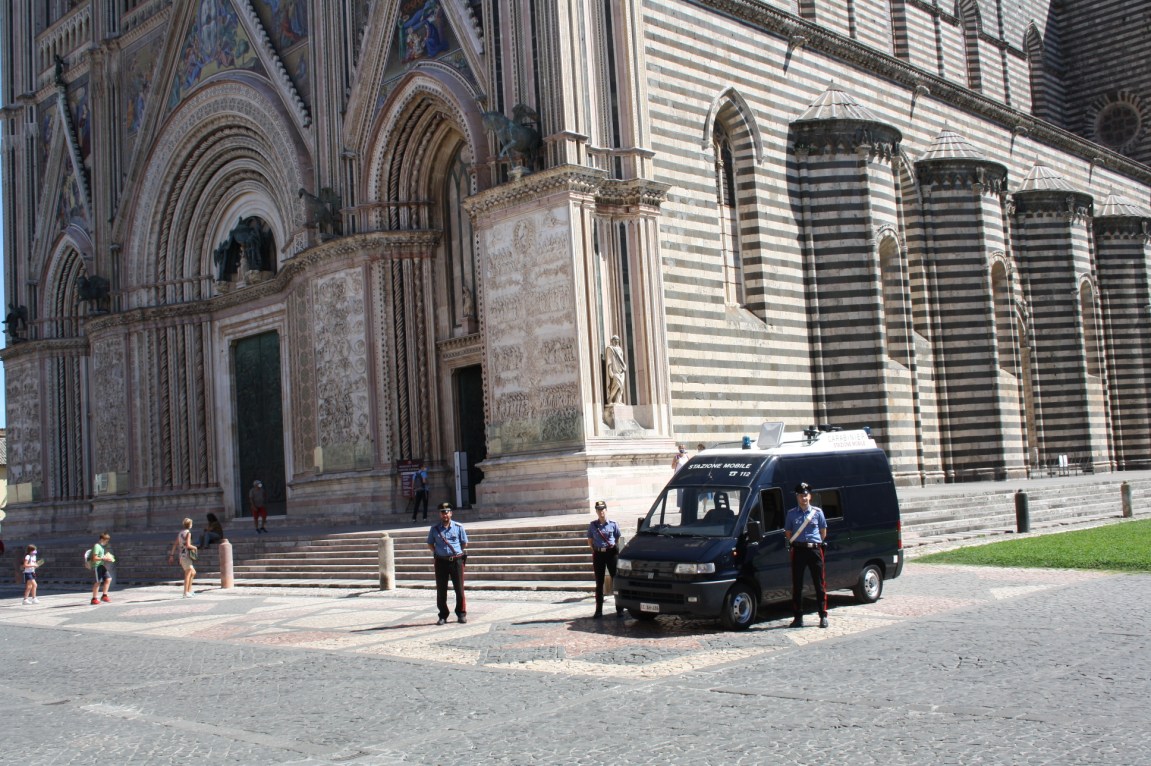 Per garantire una presenza anche più facilmente visibile, in una delle piazze più amate dai turisti, la compagnia dei carabinieri di Orvieto ha messo in campo, oltre ai carabinieri di quartiere, la stazione mobile, un mezzo attrezzato dell’Arma nel quale vengono impiegati tre o più militari, di cui almeno un ufficiale di polizia giudiziaria, organizzata per acquisire le denunce sul posto e dare una risposta pronta ed efficace al richiedente.