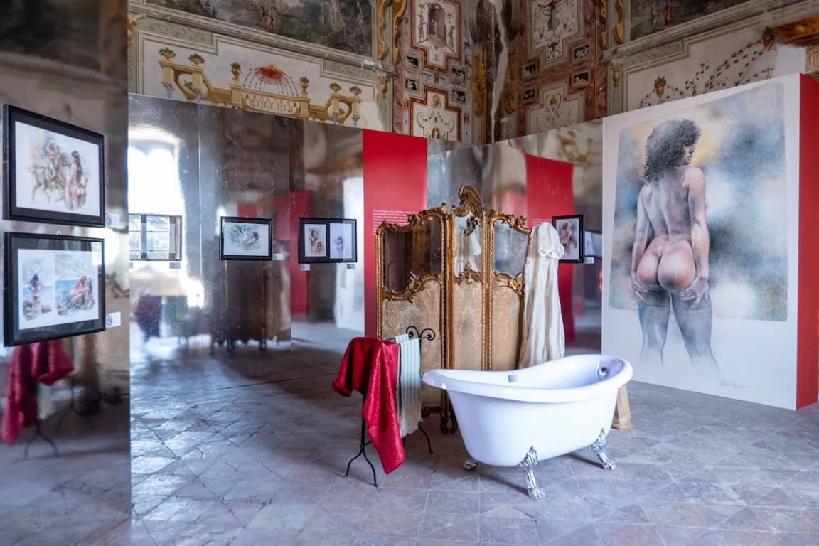 Una mostra che è quasi una collaterale, dunque: circa 300 opere, molte delle quali dei 64 autori che ripercorrono la storia del fumetto italiano e si mettono in rapporto con la mano di Serpieri nelle tre grandi tematiche che animano l’esposizione: Western, Eros e Fantascienza. «La mostra si apre con due sale dedicate alla grande frontiera americana, che ha da sempre affascinato i lettori italiani. – spiega Giulio Pasqui, co-coordinatore artistico della mostra – Una dedicata all’ambito Biblico, dove le illustrazioni di Serpieri sono messe in rapporto con il maestro Toppi: la sovrumanità ricercata da quest’ultimo contrapposta al realismo umano di Serpieri. Il tema più ricco, naturalmente, è quello della fantascienza: tre sale sono dedicate a Druuna e tutti gli altri autori della tematica. Le ultime sale saranno dedicate all’eros in un dialogo tra Serpieri e gli altri autori: la bellezza prorompente di Druuna si rapporta con le figure androgine di Crepax e le minute ragazzine di Giardini. Non poteva mancare, infine, una sala dedicata esclusivamente all’erotico, ovviamente vietata ai minori, della quale non sveliamo nulla».