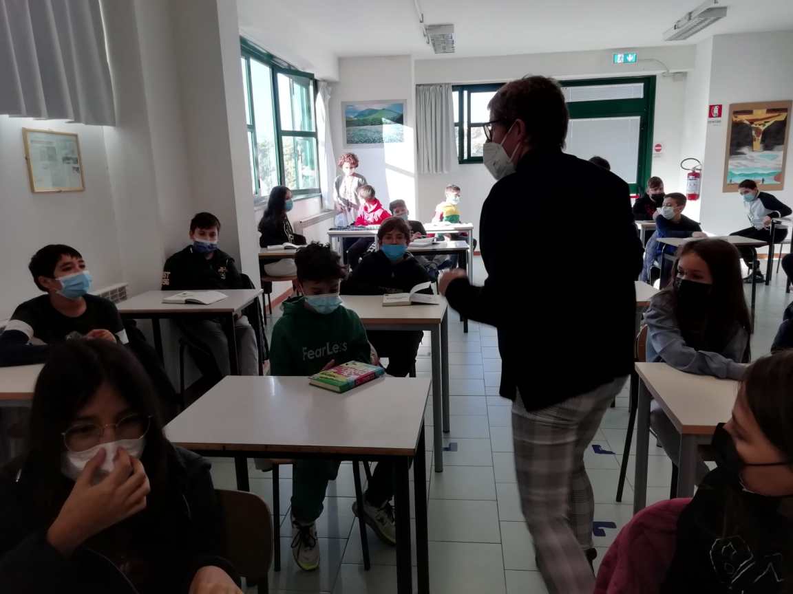 Il libro è stato strumento di riflessione sul significato profondo dell’ingresso alla scuola Secondaria di Primo grado e in maniera ironica e coinvolgente, così come lo è l’autrice, ha suggerito ai ragazzi di lavorare sulle proprie paure ed ansie nella fase di passaggio ad un altro grado di scuola, quando si “scavalca” la linea tra essere piccoli ed essere grandi e non si può più tornare indietro. Il testo è stato il perno del Progetto Continuità classi ponte primaria – secondaria primo grado. L’incontro, in presenza, nel pieno rispetto delle norme anti-covid, citano le insegnanti, è stato un momento di Vita, di comunità, dopo mesi di distanza fisica e sociale. I ragazzi entusiasti, hanno partecipato divisi in due turni , in maniera costruttiva e brillante, animando l’evento con numerose domande e presentando i loro lavori inerenti all’attività didattica svolta. «Ascoltare direttamente lo scrittore e interagire con lui ha sicuramente regalato agli studenti presenti l’emozione di un incontro del quale avranno un forte ricordo nel corso degli anni», ha commentato il dirigente scolastico, prof. Leano Garofoletti.