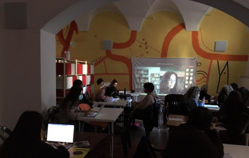 Con a disposizione una sala ad uso gratuito, il Laboratorio G.Miliocchi in Corso Garibaldi, un proiettore ed un vecchio lenzuolo, abbiamo permesso a diverse decine di studenti (armati di mascherina e green-pass) di vivere insieme le proprie lezioni seguendo tutti insieme la lezione trasmessa su Teams.
