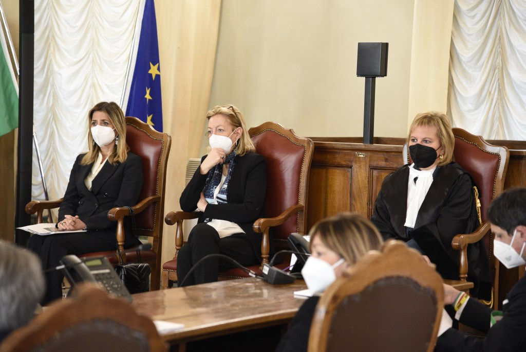 Cerimonia in forma ristretta causa covid, a cui prendono parte Lucia Aielli, dell’Ufficio Studi del Csm, e Maria Rosaria Covelli, Capo dell’Ispettorato Generale del Ministero della Giustizia.