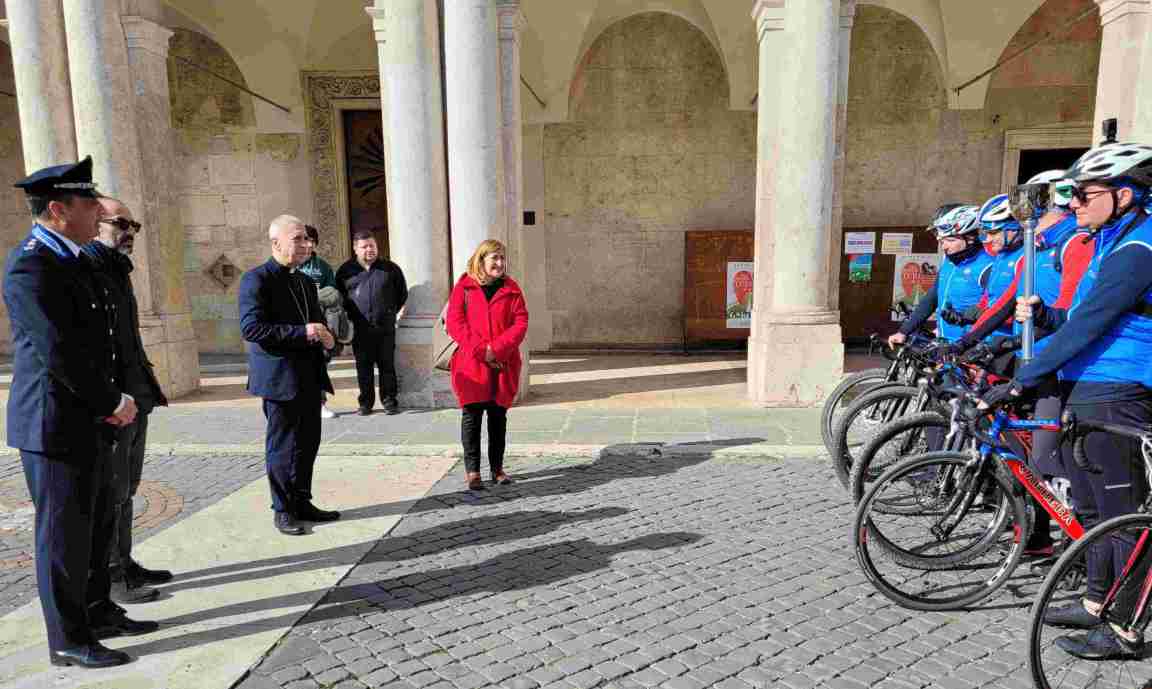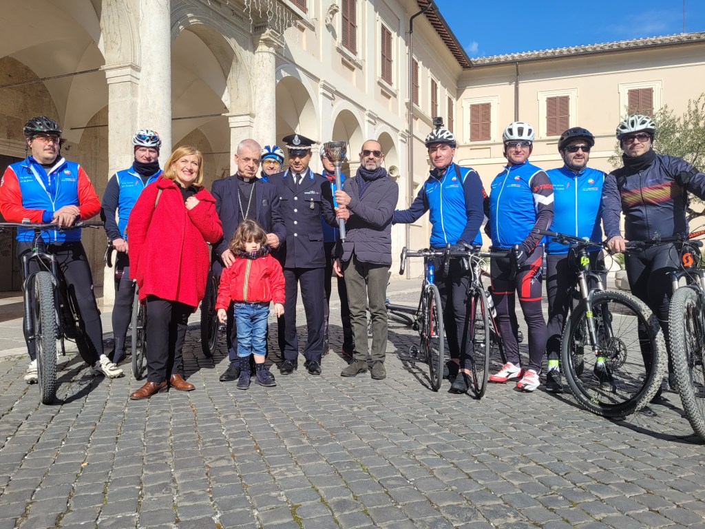 TERNI – La “torcia della pace”, partita a dicembre da Milano, è stata benedetta stamattina al Duomo di Terni. Dopo i vari passaggi in Umbria, le staffette dei ciclisti amatoriali della Polizia penitenziaria sono passati anche nella città di San Valentino, dove la torcia ha ricevuto la benedizione da parte del vescovo Francesco Antonio Soddu, prima di ripartire in direzione Cascia.