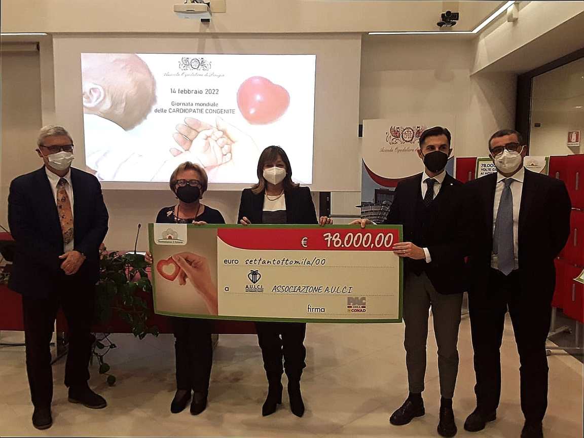 In occasione della Giornata mondiale delle Cardiopatie congenite, PAC 2000A Conad ha consegnato un assegno da 78mila all’ Aulci (Associazione Umbra per la Lotta alle Cardiopatie Infantili), per l’acquisto di due ecografi di ultima generazione da donare alla Neonatologia del Santa Maria della misericordia.