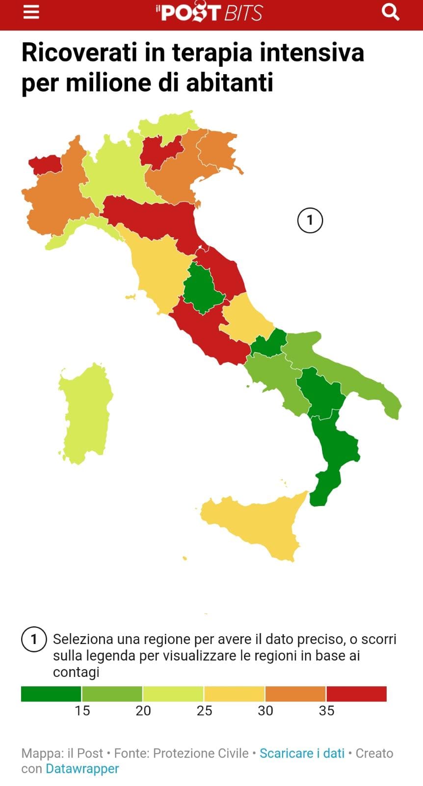In generale in Umbria il calo dei casi (come in Italia) continua, anche se con un segno meno pronunciato, come segnalato dal fisico Gammaitoni. Sicuramente non come ci si aspettava la settimana scorsa. Ma i ricoveri sono limitati e le terapie intensive dell’Umbria – ecco il primo grafico che vi proponiamo – confermano che la Regione ha sempre il record nazionale rispetto ai posti disponibili. Quindi nessun allarme per le ospedalizzazioni dovute alla sindrome da Covid, anche se sono tornate leggermente a salire.