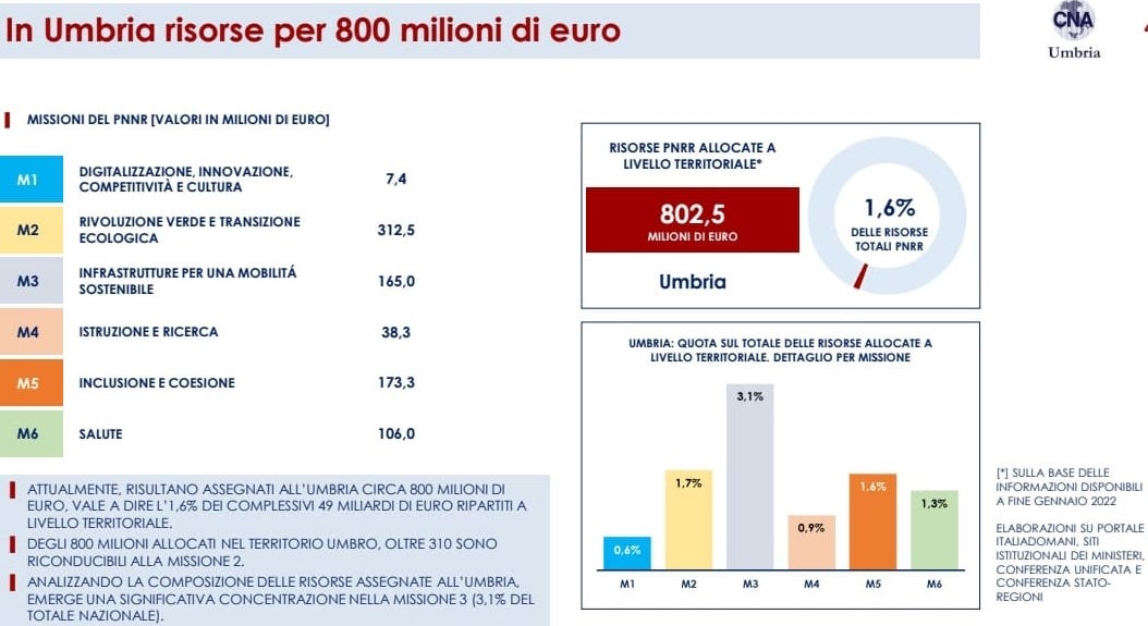 PERUGIA – Sono 800 i milioni che arrivano in Umbria via Pnrr e non sono pochi. «La Regione ha fatto un eccellente lavoro», dice il direttore generale di Cna Umbria, Giannangeli, ma c’è sempre un ma.