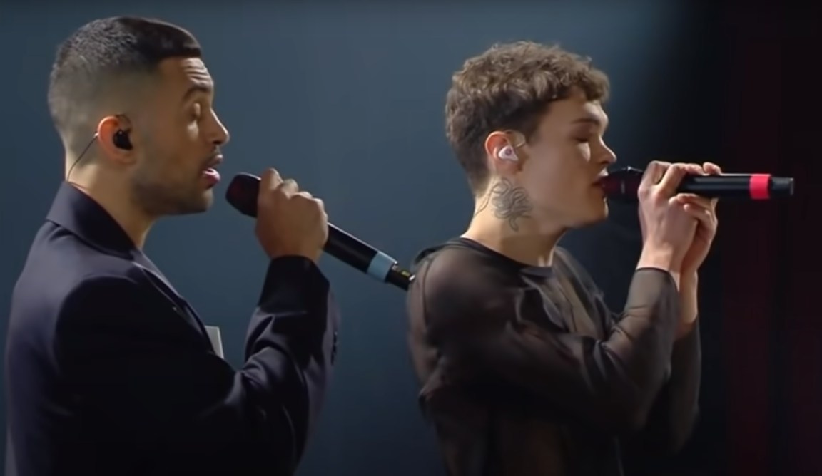 ACHILLE LAURO feat. HARLEM GOSPEL CHOIR “Domenica” (Voto 7) – Un fisico più statuario, forse più tatuaggi, stesso piglio fluido e trasgressivo di sempre. Sale sul palco a petto nudo, scalzo e solo con un paio di pantaloni di pelle addosso, circondato dal coro gospel come Hercules dalle muse nell’iconico classico Disney. Semidio anche lui? Forse, ma la religione musicale è la sua e a quella resta fedele, nel bene e nel male, battezzandosi pure sul palco con le proprie mani. Resta uno showman nato (anche il balletto con le mani incrociate dietro la testa) che funziona alle sue condizioni, oggi più di ieri senza però sorprendere poi così tanto il grande pubblico, che lo vede come Diavolo o Acqua Santa. Per questo Lauro unisce in mondovisione questi due antipodi, in una comunione d’intenti senza predica, fischiettando alla fine del ritornello