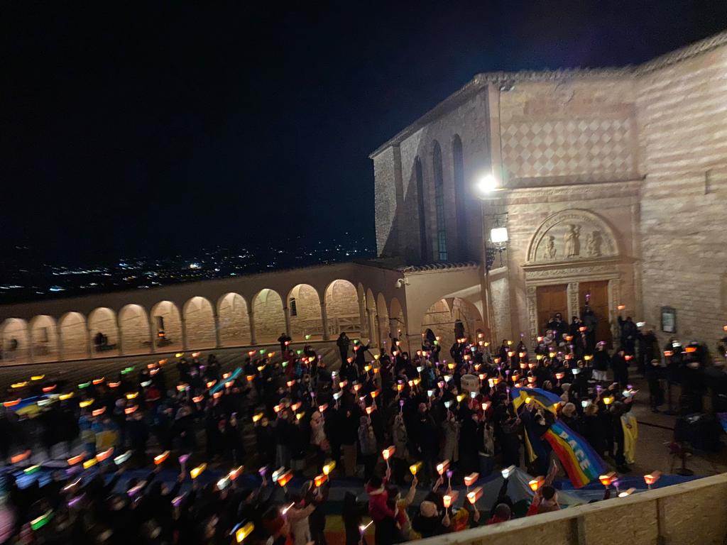 Con queste iniziative, la Città di Assisi ha espresso nel migliore dei modi, con partecipazione e sensibilizzazione, la sua spiritualità lanciando con grande forza e coraggio un messaggio di pace. Un altro segnale in tale direzione è la Rocca Maggiore, monumento simbolo, illuminata con i colori giallo e azzurro dell’Ucraina.
