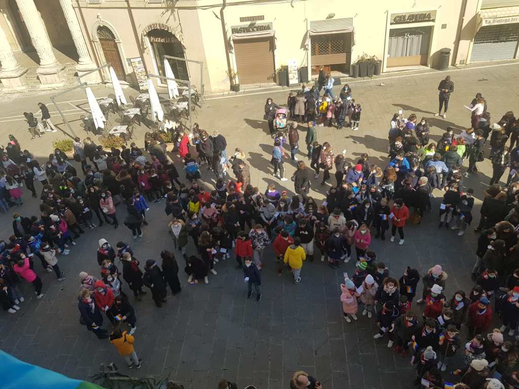 Nella Giornata indetta da Papa Francesco per pregare e digiunare a favore della pace, il sindaco di Assisi Stefania Proietti ha accolto in piazza del Comune centinaia e centinaia di alunni e studenti delle scuole di ogni ordine e grado del territorio che hanno risposto all’invito di raccontare la pace e la vicinanza al popolo ucraino. Accompagnati dai dirigenti scolastici e dagli insegnanti, i bambini e i ragazzi hanno consegnato nelle mani del sindaco pensieri, disegni e striscioni in merito alle guerre. E’ stata una bellissima testimonianza da parte dei ragazzi che si sono dimostrati sensibili e attenti a quanto sta accadendo in Ucraina, a ritenere che solo la pace ha senso e che la guerra è solo dolore e morte.