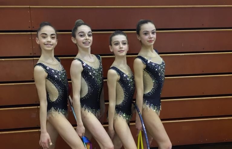 Fulginium Foligno: Sofia Murashka impegnata al cerchio con un 22,200 e alle clavette con 22,100, Morena Susini Proietti con un nastro da 22,150 punti e Linda Negrini con una palla da 20,450.