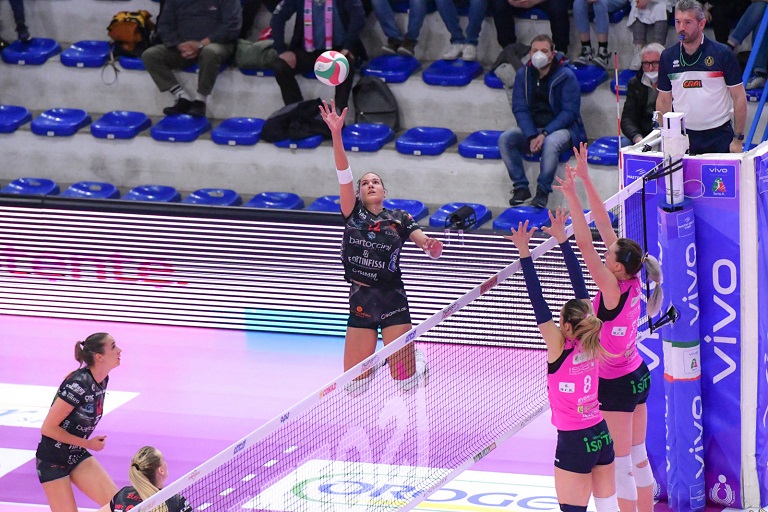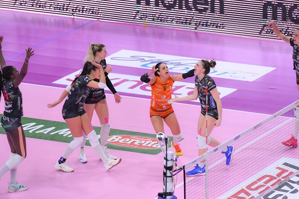 Prima dell’avvio di quarto set arriva la notizia della salvezza matematica anche per le umbre in virtù delle sconfitte di Trento e Roma, le due squadre giocano senza l’obbligo del risultato e le marcature si alternano sul tabellone fino al 12-14, la Bartoccini-Fortinfissi Perugia fa uno scatto in avanti con Havelkova dopo il videocheck e l’errore di Mangani che induce Volpini al time-out. Al rientro Shcherban cambia passo e si torna in parità sul 19-19 ed anche Cristofani chiama uno stop. Le magliette nere tornano in carreggiata con Guerra e Galkowska, sul 20-22 le casalas che spendono l’ultimo minuto di sospensione a loro disposizione. Melandri e compagne amministrano il vantaggio, sul finale è proprio la centrale romagnola mettersi in mostra con due primi tempi, il primo vale il set point (21-24) ma sicuramente il più importante è il secondo del 22-25 che vale il tie-break.