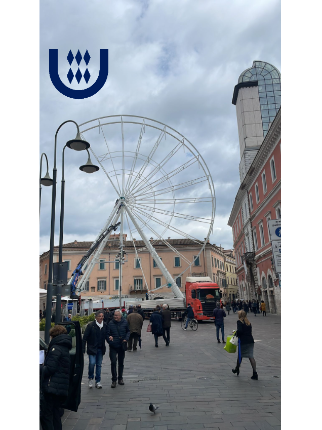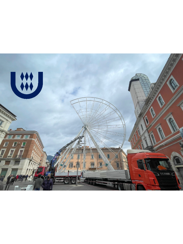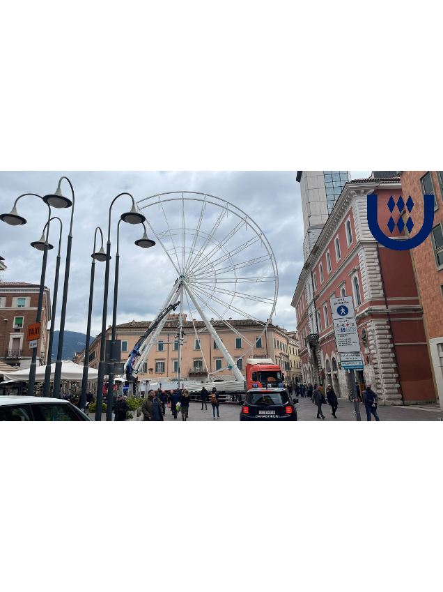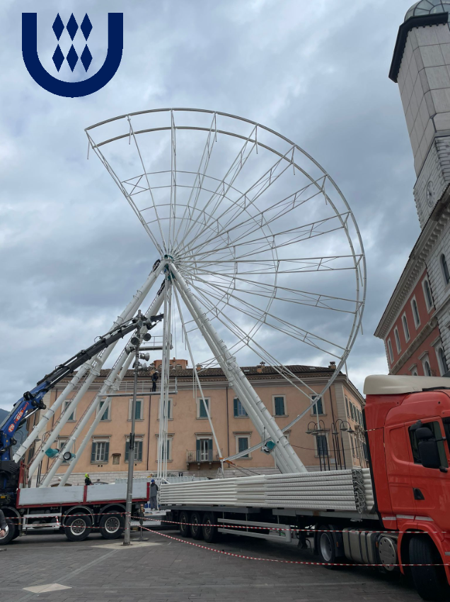TERNI – Inizia a prendere forma la ruota panoramica che per due mesi sarà installata in piazza della Repubblica. Dopo la base montata ieri, oggi i ternani passando hanno potuto appurare quale sarà il giro circolare che effettueranno una volta staccato il biglietto. Nonostante i 34 metri di altezza, considerando adesso i raggi ben visibili che andranno a formare il cerchio, la domanda già effettuata in questo articolo sorge di nuovo spontanea: sarà vero panorama? Oppure sarà solo una presenza scomoda per i residenti, come già espresso a più riprese da chi si sente “spiato”?