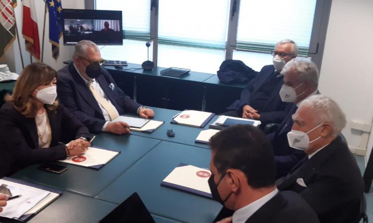 TERNI – La presidente della Regione Umbria Donatella Tesei ha ricevuto questa mattina il cavaliere Giovanni Arvedi nella sede ternana dell’ente. Il sindaco di Terni Leonardo Latini ha partecipato in video conferenza, causa Covid. Presente l’assessore regionale allo Sviluppo Economico Michele Fioroni.