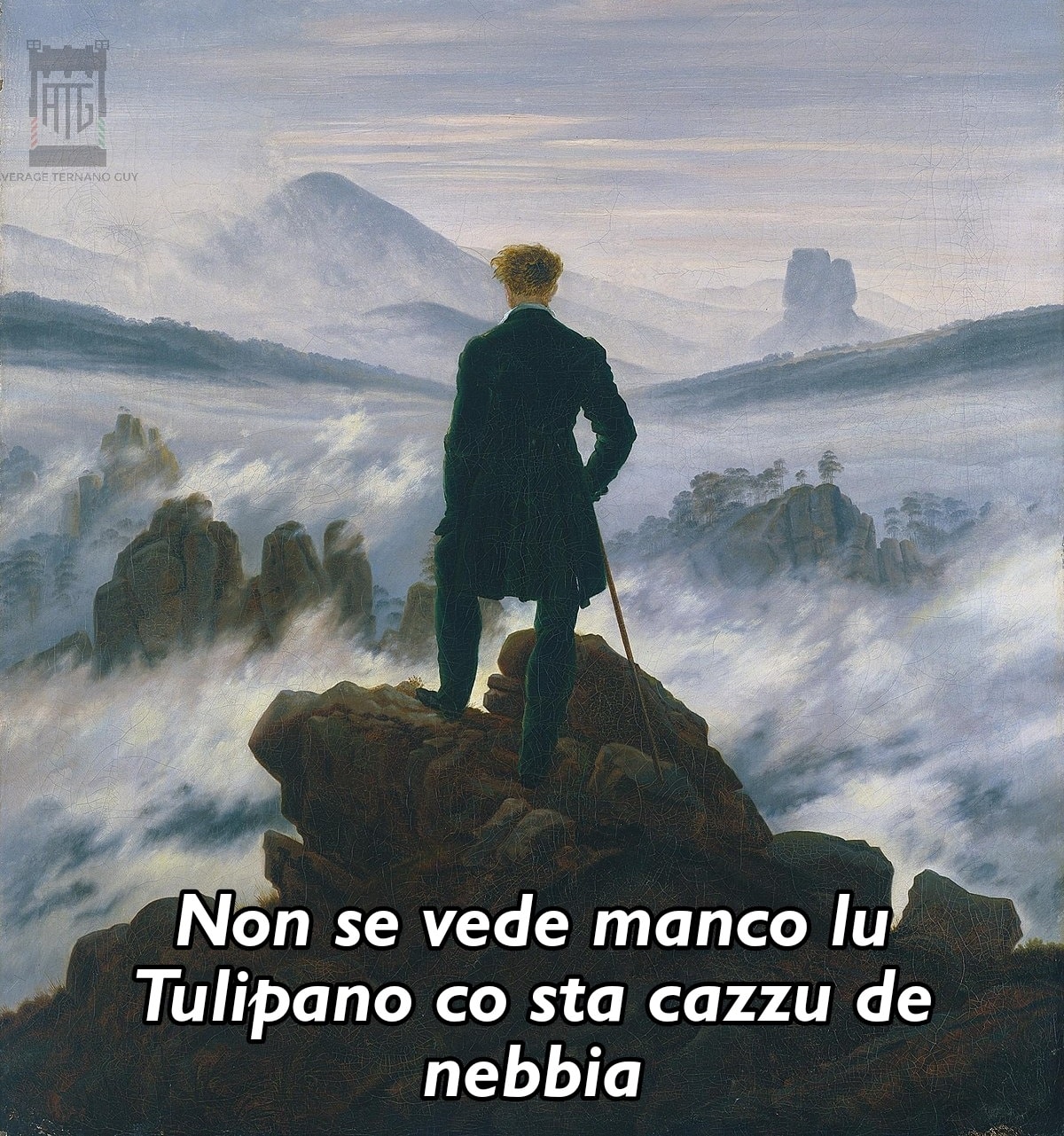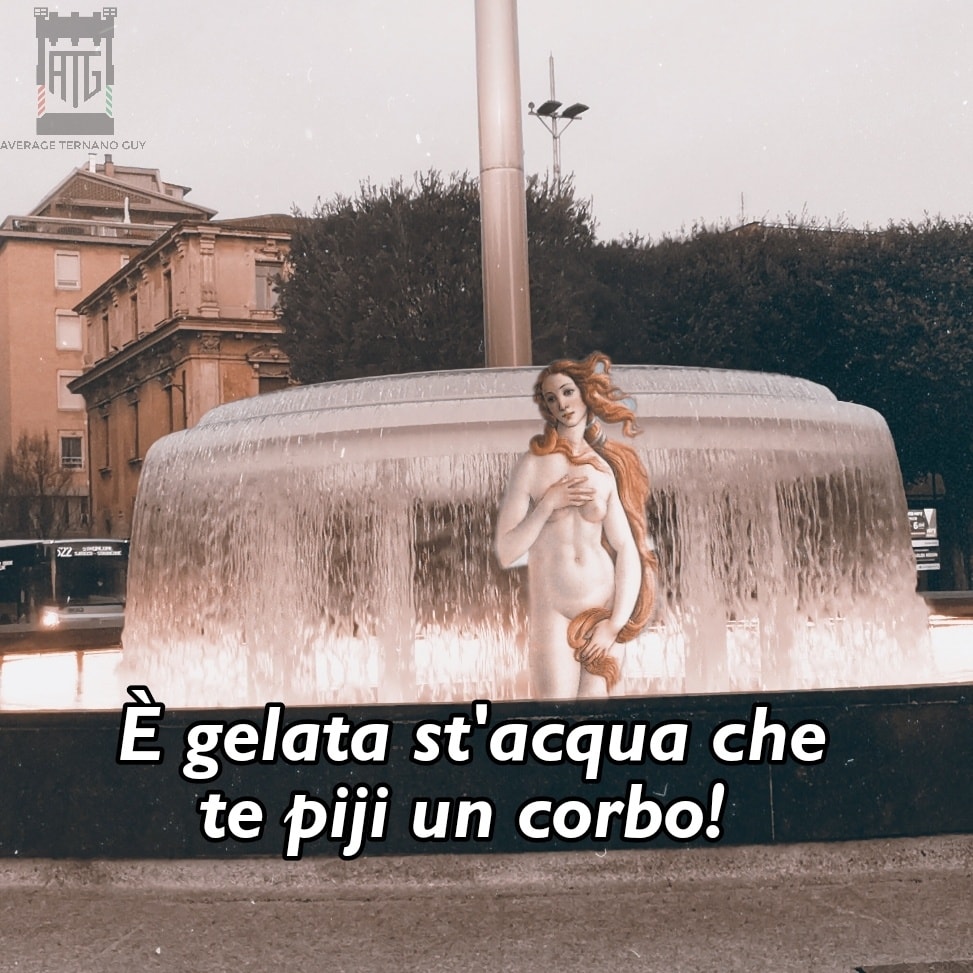 Da Santo Stefano Martire di Luca Signorelli fino alla Venere di Botticelli, passando poi dal sublime Viandante sul mare di nebbia del romantico tedesco Caspar David Friedrich: alcuni dei quadri più conosciuti e rinomati della storia dell’arte vengono estrapolati dal loro contesto per essere memizzati secondo il criterio della “ternitudine”. Ed ecco che Santo Stefano si impressiona davanti alla nuova ruota panoramica in piazza della Repubblica, la Venere si lamenta della temperatura ghiacciata dell’acqua della fontana di piazza Tacito – con tanto di “corbo” annesso – e il Viandante ha davanti a sé una distesa di nebbia che gli impedisce di vedere addirittura il Tulipano.