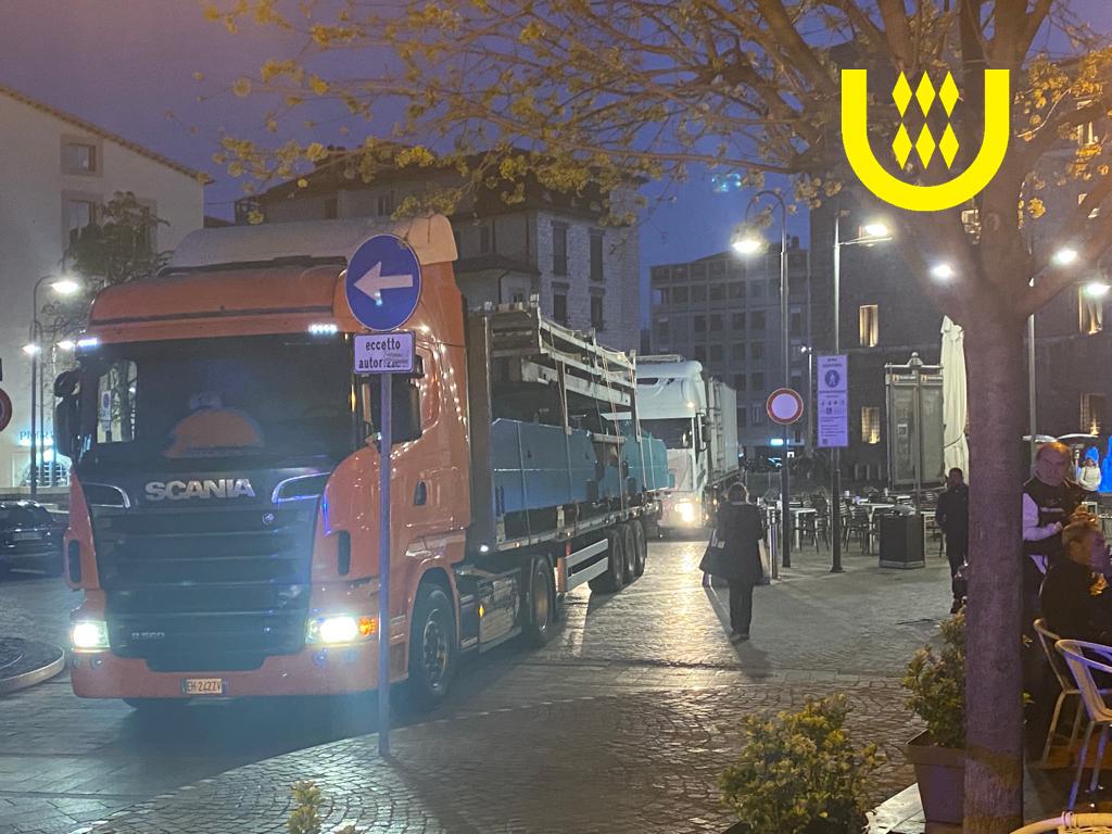 TERNI – Alle 20 in punto di martedì 5 aprile sono stati spenti i varchi di accesso alla Ztl per lasciar passare i tir. Ciascuno con un pezzo della ruota panoramica che sta velocemente sorgendo in piazza della Repubblica. «Proprio di fronte alla lapide sulla quale noi amministratori andiamo a deporre una corona il 25 aprile» – fa notare l’assessore regionale Enrico Melasecche. Ritiene l’operazione “inopportuna” : «Trasformare quella piazza in un luna park è assurdo».