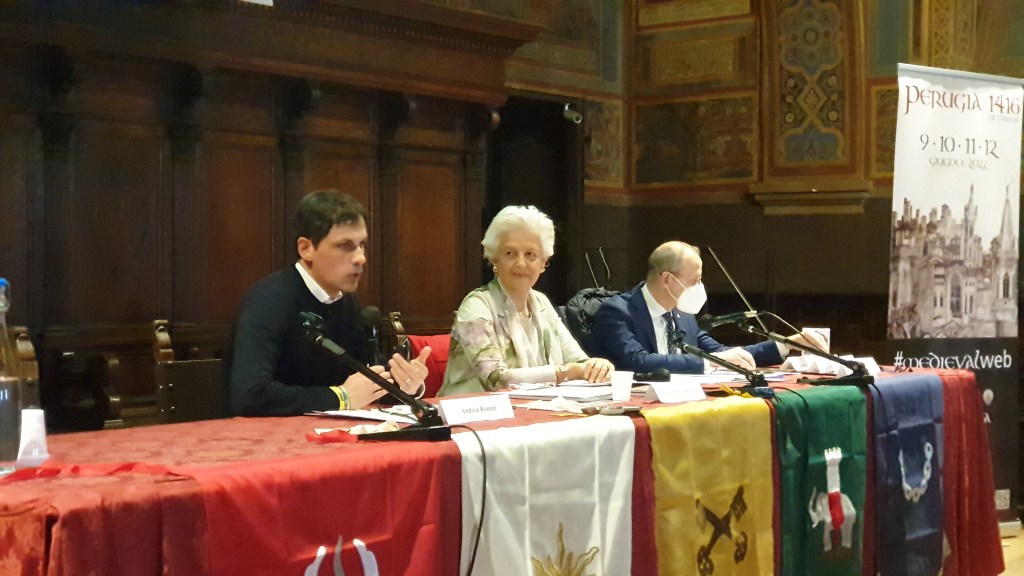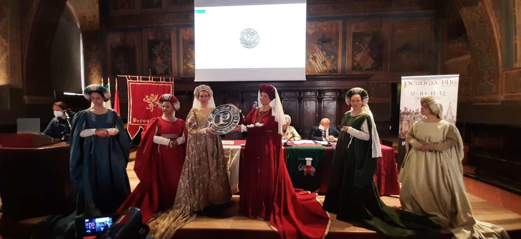 Sul fronte delle nuove testimonianze storiche sono intervenuti i rionali Maria Chiara Bisacci e Ulderico Pettirossi. L’edizione 2022 offrirà l’occasione per presentare una pergamena, datata 17 luglio 1416, conservata nell’archivio di Stato di Perugia, che fa parte delle Riformanze del Comune. Si tratta della delibera del Consiglio dei Priori e dei Camerlenghi delle Arti con la quale viene conferito mandato di spesa per accogliere Braccio Fortebracci in città (dopo la sua vittoria nella battaglia di Sant’Egidio avvenuta il 12 luglio 1416) con festeggiamenti solenni, consoni all’importanza del personaggio.