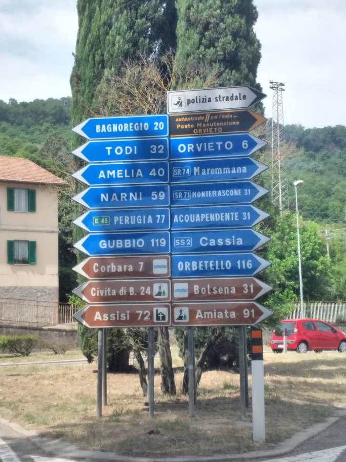 Ma per Terni deve chiedere ai passanti, come si faceva un tempo, perché non compare nessuna indicazione per la terra di San Valentino. Chi è “di casa” sa che può tranquillamente affidarsi alla cartellonistica stradale seguendo le indicazione per Orte, ma per chi proviene da lontano diventa un problema raggiungere Terni senza inserire il navigatore o contare sull’intuito.