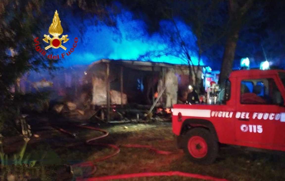 Oltre ai prefabbricati in legno anche due camper in fiamme. Illesi i proprietari