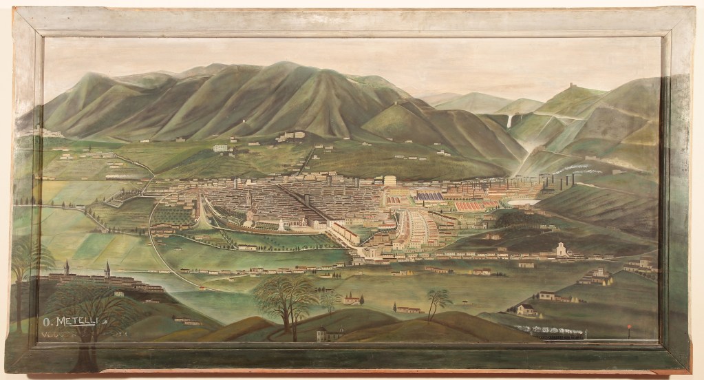 «Andò forse così, quando, in quel lontano 1936, il caso noncurante fece entrare Aurelio De Felice insieme all’amico Ugo Castellani, nel bizzarro studio di Metelli, imprenditore nel campo delle calzature e artista a tempo perso». Cicchini ricorda che fu Ugo Castellani a parlare dei quadri di Metelli a De Felice. Che allora aveva vent’anni. E che scrisse di quell’incontro nel suo diario: «Ci ricevette in cantina, in quel vasto seminterrato della sua casa liberty di provincia costruita dopo il ’20. Per me Metelli fu una grande rivelazione. Mostrava i suoi quadri e spiegava che cosa avrebbe voluto raccontare con questo o quel soggetto. Ridendo sotto i baffi, specie quando mi mostrò Il prete pittore». Neanche Metelli seppe nascondere la propria meraviglia per la visita di quel giovane che studiava a Roma e che frequentava “artisti veri”. Il pittore naif ternano invece, aveva iniziato a dipingere a cinquant’anni, per sfuggire all’amarezza di non poter più suonare (ragioni di salute). De Felice, che ha lasciato un patrimonio immenso: di opere, di progetti e di visioni (a Torreorsina, frazione del comune di Terni, il grande scultore del Novecento, immaginò, e dunque realizzò, un parco pubblico popolato dalle copie in vetroresina di alcuni tra i suoi lavori più belli, come Battaglia di ragazzi, Non uccidete i nostri figli, Nascita della danza), fu il vero grande estimatore di Metelli. Il “padre”. «Metelli è stato un grande cronista della sua epoca: documentò le trasformazioni sociali e architettoniche in atto a Terni, città che, divenuta capoluogo di provincia nel 1927, necessitava di un moderno assetto viario e urbanistico con edifici amministrativi di rappresentanza». Paolo Cicchini spiega come i quadri di Metelli testimonino abitudini e trasformazioni, con “Il mercato alla fiera”, “Festa notturna”, “Parata militare”, “Visita di Mussolini”. Nelle tele di Metelli sono ritratti i palazzi e le strade, sono registrati avvenimenti e abitudini: «In alcuni dipinti il valore didascalico delle scene illustrate è rafforzato dall’inserimento di parole scritte come fumetti, a volte associate a filastrocche dialettali o partiture musicali, perché Metelli era prima di tutto un musicista». Metelli non attribuì mai valore artistico ai propri dipinti. Li mostrava di rado. Solo dopo la sua morte i suoi quadri furono esposti oltre confine, grazie a De Felice. Per Cicchini, infatti, è difficile parlare di Metelli senza raccontare il ruolo che ha avuto De Felice nella divulgazione delle sue opere pittoriche. Che non sono tantissime: circa duecento. Cicchini è un grande conoscitore di Metelli e autore insieme Maurella Eleonori del libro edito dalla Fondazione Carit, dato alle stampe in concomitanza con la grande retrospettiva dal titolo “Metelli …il racconto della città che c’era”, conclusa con numeri da record: 3.500 presenze e 70 quadri esposti, tra acquerelli, olii su tela, tavola e cartone, provenienti da collezioni private di Terni, Roma, Tivoli, Rieti e Verona. «E’ stata una impresa straordinaria mettere insieme tutte quelle opere e desumere da esse la personalità di Orneore Metelli. E tutto questo – segnala Cicchini – è stato reso possibile grazie alla sensibilità della Fondazione Carit».