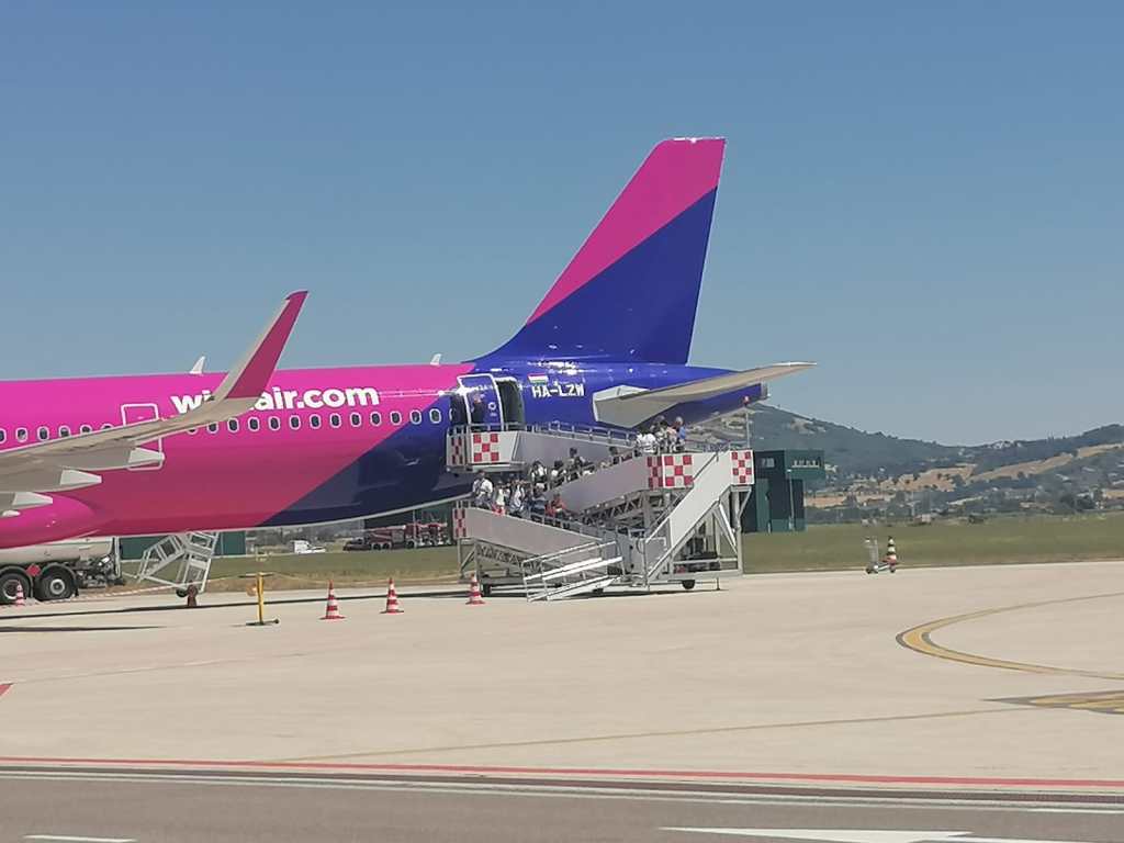 PERUGIA – È atterrato mercoledì mattina alle 12 e 10 in punto il nuovo aereo della compagnia Wizz Air A321. La sua capacità di carico è di 239 passeggeri, uno dei più grandi della flotta dell’aeroporto di San Francesco d’Assisi a Sant’Egidio che inaugura la tratta Perugia-Tirana.