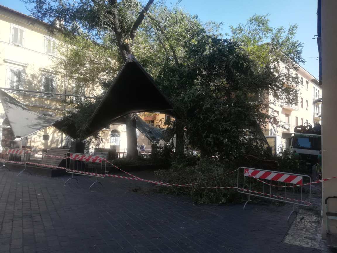 «Liberiamo la piazza». Neanche il tempo di rimuovere i rami caduti che già nella notte, nella chat dei consiglieri comunali di maggioranza si era scatenata la caccia alla ruspa.