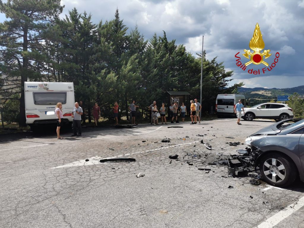 COSTACCIARO (Perugia) – Lo scontro è avvenuto nelle prime ore del pomeriggio, al chilometro 5+206 della strada statale Flaminia, in località Costacciaro, in provincia di Perugia. Protagoniste dell’incidente due auto – di cui una trainava una raoulotte -, schiantatesi a ridosso di un incrocio.