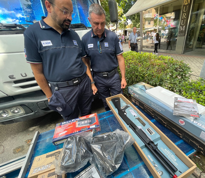 SPOLETO (Perugia) – Sono sei pistole, un fucile e settantadue bombole di “power gun air”, tutte destinate agli sportivi e appassionati di soft air, sequestrate dai funzionari Adm di Perugia e dagli agenti della polizia locale di Spoleto, durante la fiera della Madonna di Loreto, a un commerciante laziale che le esponeva al pubblico per la vendita. Posti sotto sequestro anche due dispositivi di protezione individuale (maschere) e un tiro a segno.