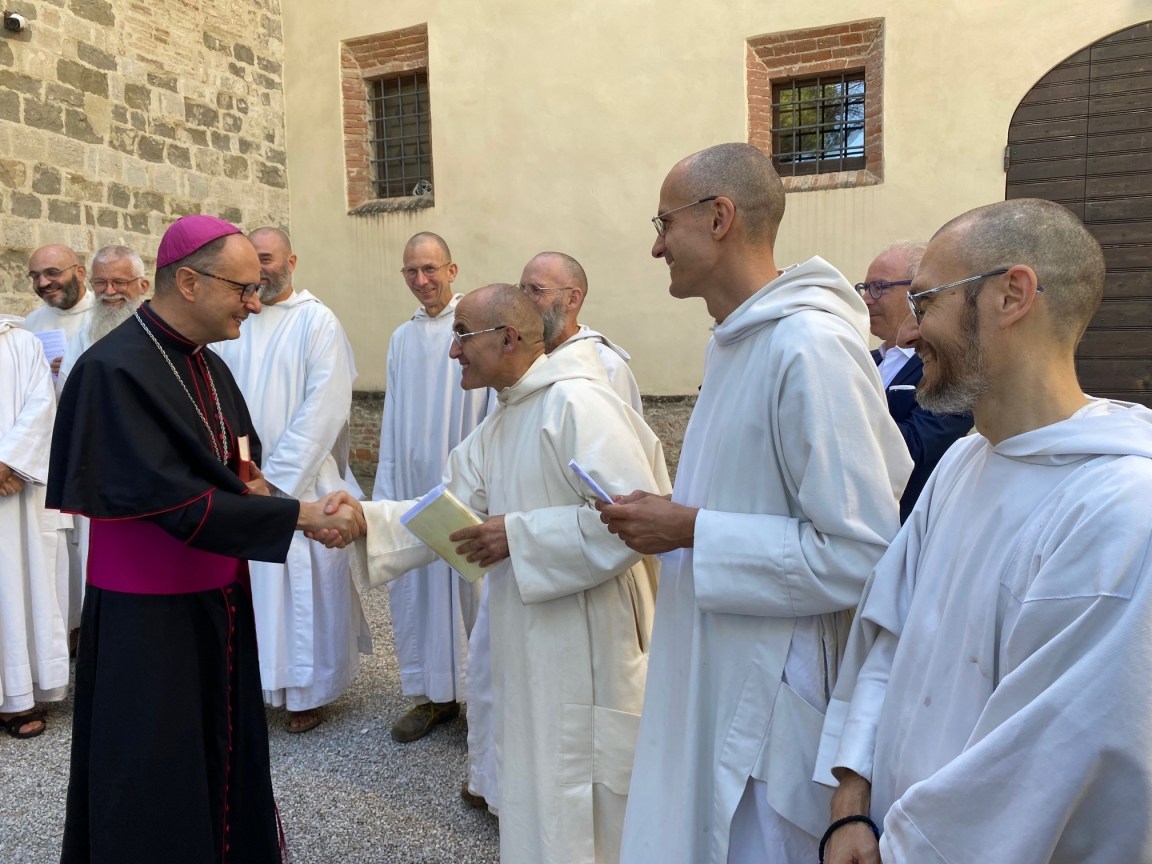 PERUGIA – «Come ci dice il Santo Padre: pregate per me, pregate gli uni per gli altri». Sono le parole pronunciate dall’arcivescovo eletto don Ivan Maffeis nel salutare i fedeli che lo attendevano davanti all’abbazia-basilica minore di San Salvatore di Badia di Montecorona, nel comune di Umbertide. Il sindaco lo ha salutato con queste parole: «Ci piace immaginare il suo ministero come un pellegrinaggio, dove tutti noi siamo pronti a sostenerla».