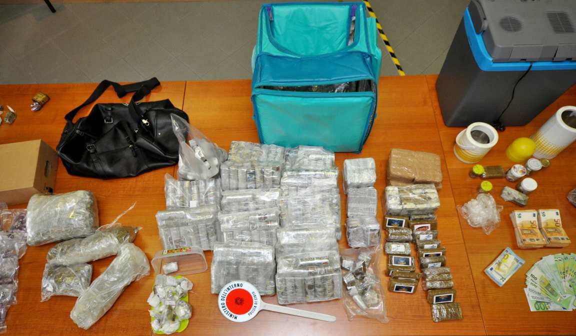 Poi, nel garage, sono stati sequestrati 52 chili di hashish e circa due e mezzo di marijuana. Dentro una delle valigie, contenente alcuni chili di hashish, rinvenuta anche la somma di 30mila euro in contanti, proventi dello spaccio. Lo stupefacente, se immesso sul mercato illecito, avrebbe fruttato ricavi per oltre mezzo milione di euro.