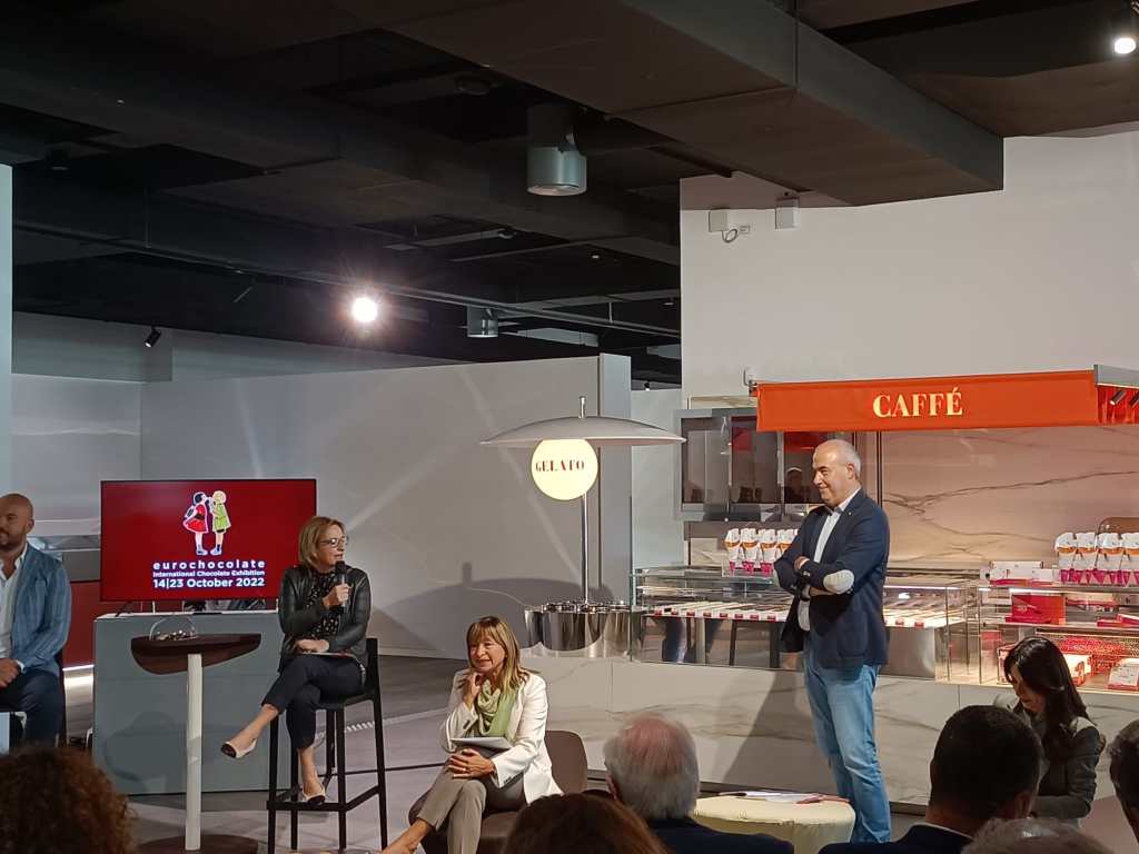 «Felici in un secondo» è il claim scelto per la kermesse: sarà possibile giocare con il nuovo cioccolatino disegnato dal designer Matteo Ragni, provando a farlo saltare in bocca mediante una rapida pressione con l’indice della mano. Un esercizio giocoso e goloso che darà l’opportunità di aggiudicarsi un ingresso omaggio all’evento, da abbinare a un biglietto già acquistato, dimostrando con un video pubblicato sui propri canali social di essere riusciti al Santimbocca, portando il cioccolatino in bocca. La sfida e il programma sono stati presentati da Enrico Guarducci, presidente di Eurochocolate, nella mattina di venerdì 7 ottobre nella Isa Spa a Bastia Umbra – azienda che produce e distribuisce i prodotti nel mondo delle vetrine refrigerate e arredamenti per locali pubblici e che il prossimo anno festeggerà sessant’anni di vita. Presenti per l’occasione la presidente della Regione Donatella Tesei, gli assessori al Comune di Perugia Gabriele Giottoli e Clara Pastorelli, la presidente della Provincia di Perugia Stefania Proietti, il presidente di Confcommercio Umbria Giorgio Mencaroni e l’assessore ai lavori pubblici di Bastia Umbra Valeria Morettini. Le autorità presenti hanno sottolineato in particolar modo la grandezza dell’evento e la sua capacità di «destagionalizzare il turismo, rendendo il mese di ottobre un periodo di alta stagione», come ha sottolineato la presidente Proietti. Tre padiglioni per tre aree tematiche: la chocolate experience, il chocolate show e il funny chocolate accoglieranno degustazioni guidate, giochi, lavoratori, animazioni e intrattenimento e un emporio del cioccolato. Ai possessori del ticket intero saranno dati dei golosi omaggi: un assortimento di 13 saltimbocca alla Perugina, il Napolitain da Plenitude e due assaggi di Lindt. Tra le novità ci sarà «Caciao», una caciotta con granella di cacao. «Provatelo fuso – è il consiglio di Guarducci – e mangiatelo con un pezzo di pane abbrustolito. È una meraviglia». Il programma completo è possibile consultarlo al sito dell’evento. «I segnali per questa stagione autunnale sono positivi – continua Guarducci – Le vendite dei biglietti si attestano intorno al 25% in più rispetto a quello che avevamo previsto. C’è tanta richiesta e tanta attenzione».