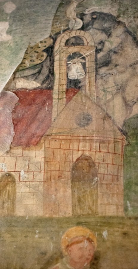 Sotto Sant’ Elmo è scritto: HOOPVS FACTA FARE FAMILIA ROSATI. Nella nicchia, che fungeva da altare, è riprodotto un Cristo Maestro nel sottarco, mentre ai lati una Madonna del Rosario; altro frammento forse di Santa Caterina. Nella parete di destra della nicchia un bell’ affresco di contenute dimensioni raffigurante le stigmate di San Francesco datato 1513. Il Santo è in estasi che riceve le stigmate dal Crocifisso sospeso tra nuvole e teste cherubiche. Alle spalle del Santo si intravede un piccolo conventino forse San Damiano. La chiesetta, prima del recupero, era in un avanzato stato di abbandono, quindi i dipinti hanno risentito lungamente di questo stato di degrado.