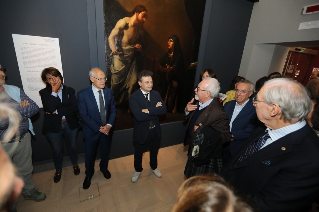 Lo storico dell’arte ha spiegato ai primi visitatori – molti dei quali ospiti istituzionali – perfino l’anatomia delle vene che rende viva la sofferenza nella Crocifissione. E ancora: «Gli occhi semichiusi, una lacrima sulla guancia destra incorniciati da una luce abbagliante testimoniano l’incontro con il divino prima dell’ultimo respiro. Si potrebbe leggere in questa raffigurazione la conversione spirituale di Caravaggio che, a partire dalla Resurrezione di Lazzaro di Messina, compie un percorso di redenzione interiore che traspare nelle sue tele, quasi velate da un’aura mistica».