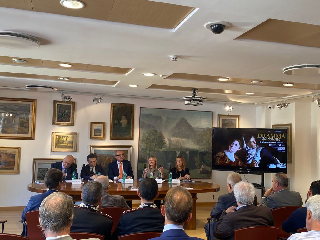 TERNI – Con “Dramma e Passione – da Caravaggio ad Artemisia Gentileschi”, la Fondazione Carit celebra i trent’anni dalla nascita tornando ad ospitare un grande evento. Una mostra incentrata su un’opera mai esposta di Artemisia Gentileschi, Giuditta con la testa di Oloferne, e in particolare su due opere di Caravaggio difficilmente visibili al pubblico, la Maddalena addolorata e La crocifissione di sant’Andrea, inaugurata questa mattina a Palazzo Leoni Montani, sede della Fondazione Cassa di Risparmio di Terni e Narni. Un percorso espositivo stabilito autonomamente dallo storico dell’arte Pierluigi Carofano (curatore della mostra) in collaborazione con Tamara Cini. «Ci siamo sentiti liberi di scegliere da dove partire e dove arrivare – sottolinea Carofano – senza seguire il classico itinerario cronologico delle opere. E questo non è un aspetto secondario dell’operazione culturale che abbiamo portato avanti con la Fondazione, perché raramente chi organizza un evento del genere concede tanta libertà ai curatori».