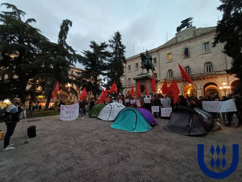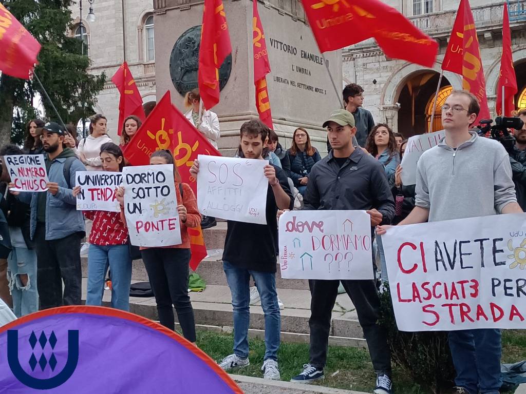 “Studenti senza casa” organizzata dalla Sinistra Universitaria – Udu Perugia ha visto protestare per il diritto alla casa che «per gli studenti UniPG e UniStra non è più garantito – spiega l’Udu -: più di 600 studenti con difficoltà economiche non avranno il posto letto ADiSU; non si trovano più stanze nel centro storico e gli affitti sono alle stelle, molti studenti non hanno un posto in cui stare. La Regione sapeva dell’emergenza ma continua a non fare niente per risolvere la situazione. Nel frattempo L’ADiSU sta commettendo numerosi errori che hanno paralizzato il diritto allo studio. Per lanciare un segnale molto forte monteremo delle tende in piazza per dimostrare che la Regione ci ha lasciato per strada, letteralmente. Inoltre ci fermeremo per la notte a dormire in macchina in segno di solidarietà per quegli studenti che sono costretti a dormire in questo modo (abbiamo raccolto numerose testimonianze) perché sono stati esclusi dai collegi universitari, nonostante ne avessero diritto».