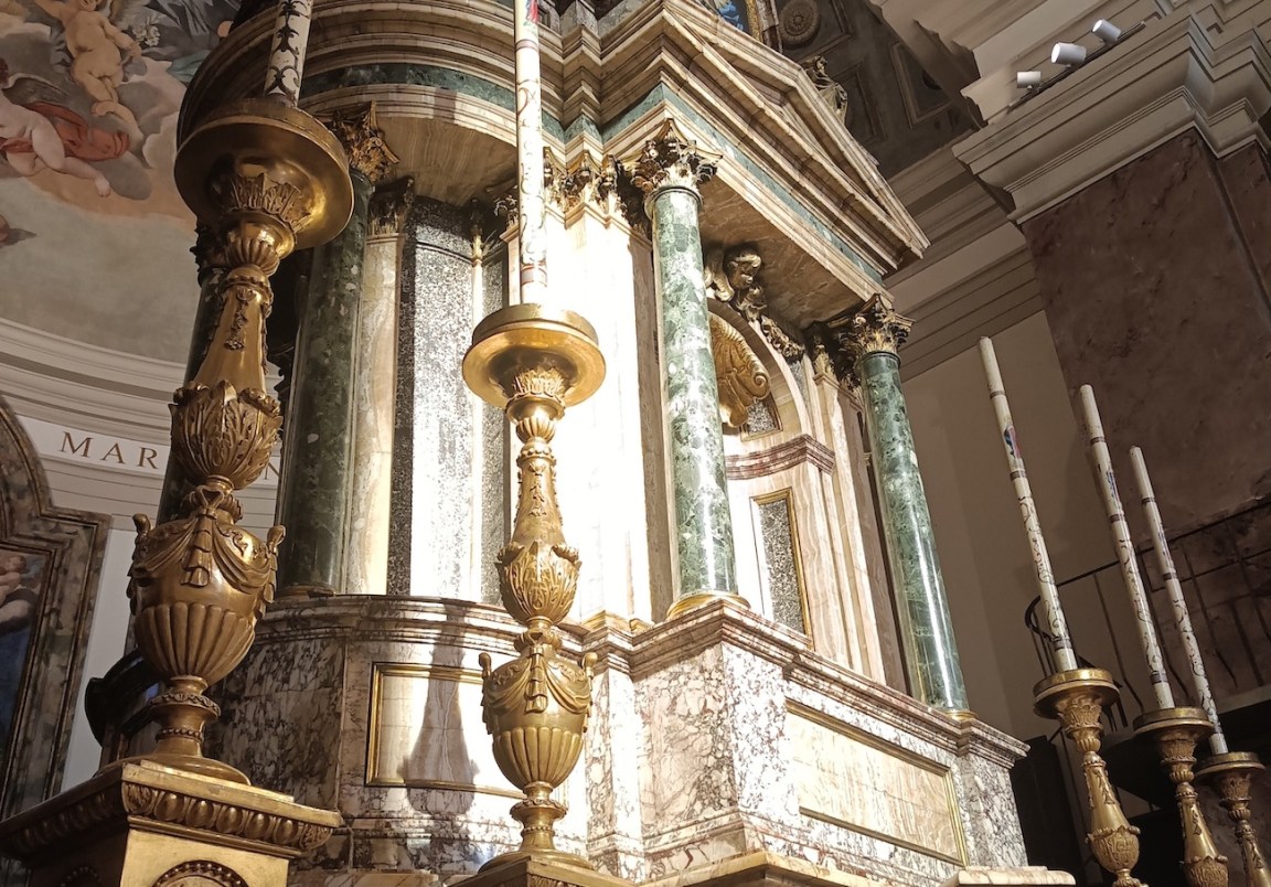 TERNI- L’ altare maggiore (nella foto) con i suoi preziosi marmi, da un progetto del Luigi Vanvitelli e realizzato da Carlo Murena e il monumentale organo di Luigi Neri 1647 e il bellissimo coro ligneo del 1559 realizzato dal siciliano Domenico Corsi sono il punto centrale per quanto riguarda il prezioso patrimonio artistico presente all’ interno dell’ edificio. Innanzitutto andiamo a conoscere a sommi capi Carlo Murena che è stato un architetto periodo tardo barocco.