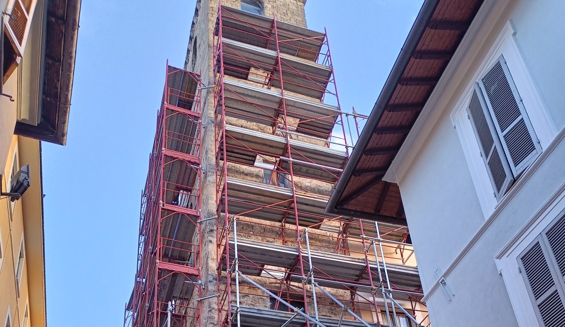 TERNI – La torre dei Barbarasa, ingabbiata nelle impalcature è un auspicio che fa ben sperare ad un roseo futuro per uno dei tanti monumenti della nostra città. La storia e questi reperti di Terni non cesseranno mai di stupirci (come i nuovi rinvenimenti a largo Cairoli o i nuovi reperti emersi nella campagna di scavi presso Carsulae).