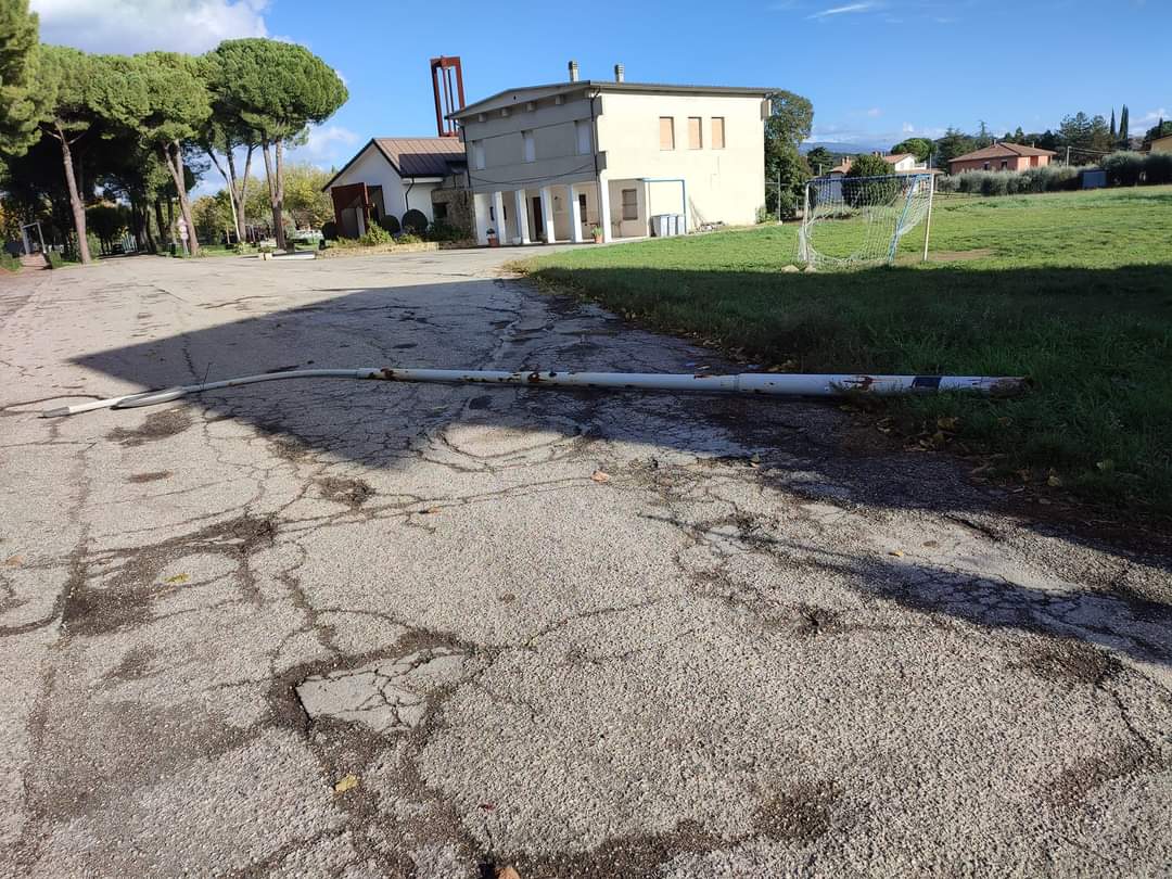 PERUGIA – Tragedia sfiorata a Balanzano, dove nella mattina di venerdì 18 novembre, un palo della luce è caduto a causa del vento, precipitando sulla strada di fronte al campetto parrocchiale. Caso ha voluto, per fortuna, che in quel momento non circolassero macchine e non ci fossero persone a passeggio o nonni per mano ai propri nipoti. Perché in effetti proprio più avanti in strada Tiberina Sud – dove il palo è caduto, si trova un asilo nido e una scuola elementare. Nessun danno a persone, ma il pericolo si è avvertito.