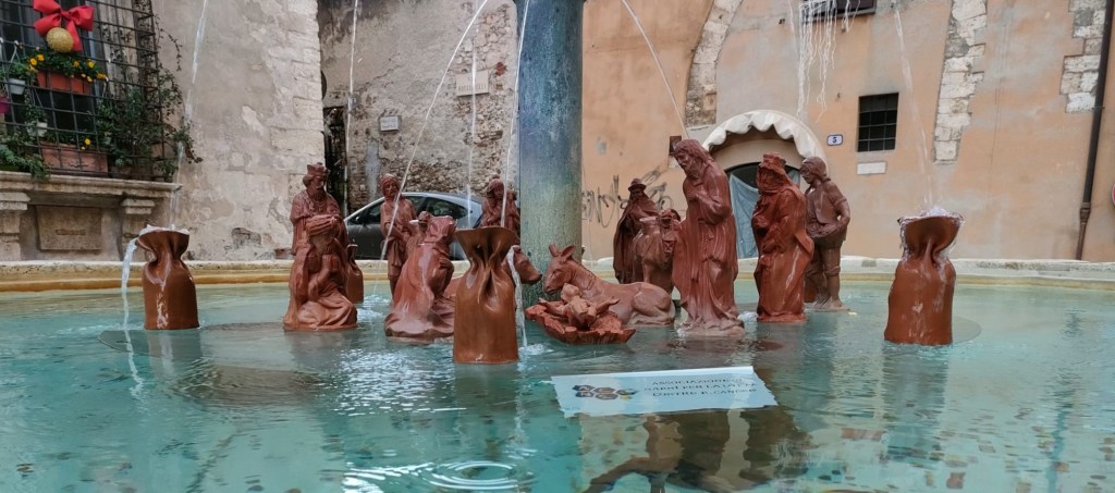 NARNI (Terni) – Grandi pacchi regalo ad adornare palazzo dei Priori e il teatro Comunale Giuseppe Manini, con dei ritorni in qualche angolo, negozi con luci e ghirlande e, immancabile anche quest’anno, la Via dei presepi, con Natività di diverse dimensioni tutte da ammirare nel centro storico del borgo tra vicolo Belvedere, via XX Settembre, Pozzo della Comunità, via Nerva, vicolo Torto, via del Fico, via della Vite: questo lo scenario che si presenta a Narni in questo periodo di feste natalizie.