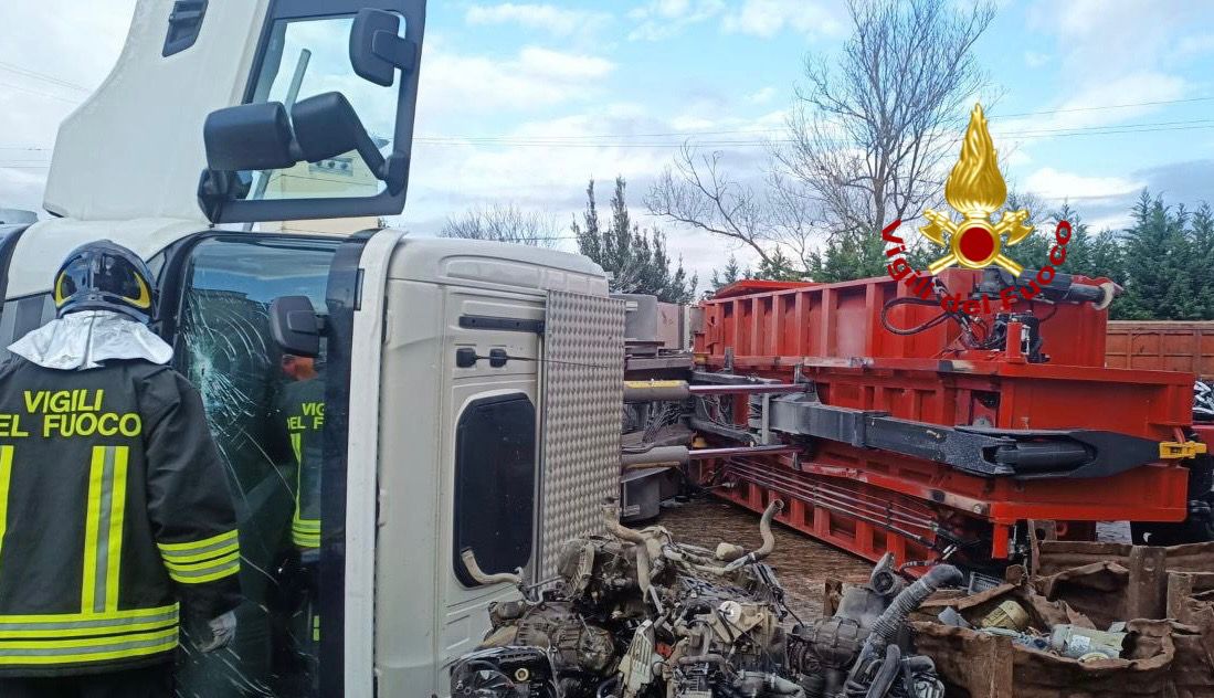 GUBBIO (Perugia) – È rimasto ferito, per fortuna lievemente, l’autista dell’autoarticolato che mercoled’ mattina si è rovesciato all’interno del piazzale di un’azienda di smaltimento materiali ferrosi.