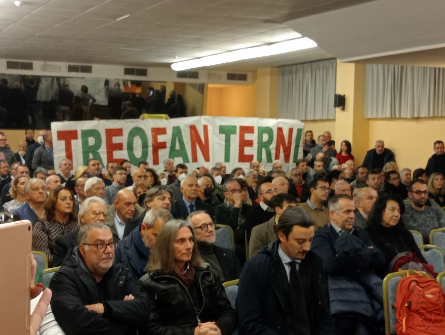 TERNI-Dalla Treofan all’Interpan passando per l’idrogeno e l’ingegneria meccanica, un fiume in piena come sempre il Patron Bandecchi accompagnato dal coordinatore, Riccardo Corridore, mentre in prima fila Paolo Tagliavento e Sergio Anibaldi. Sala gremita in ogni ordine di posto, caldo infernale al limite della sicurezza per i presenti. Qualcuno difatti si è sentito mancare. Il Bandecchi candidato sindaco vive ancora l’antagonismo con Perugia, non solo politico, ma personale ma se vuole creare un’alternativa popolare a livello nazionale anche Perugia come altre città potranno tornare utili in termini di voti.