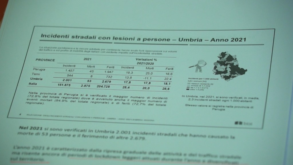 Così ha esordito Ruggero Campi, presidente dell’Automobile club di Perugia durante l’incontro organizzato per illustrare i dati Istat sugli incidenti stradali in Umbria nel 2021 dai quali emerge un quadro definito «terribile». Tornano a crescere infatti gli incidenti stradali e anche morti e feriti sulla strada rispetto al 2020. All’incontro con la stampa, giovedì primo dicembre, hanno partecipato anche Armando Gradone, prefetto di Perugia, Moreno Landrini, delegato della presidente della Provincia di Perugia, Francesco Cipriano, comandante della Polizia stradale di Perugia, Sabrina Angiona per Istat, Luca Merli, assessore alla viabilità del Comune di Perugia, e Michele Perla per i Vigili del fuoco di Perugia. Presenti, inoltre, il vicepresidente del Coni Umbria Aurelio Forcignanò, rappresentanti dell’Arma dei Carabinieri, della Guardia di Finanza e della Polizia locale di Perugia.