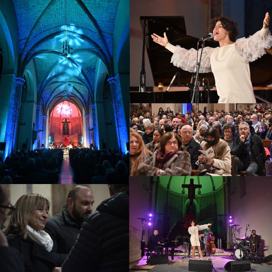Il quartetto (la voce di Karima, accompagnata da Piero Frassi al piano, Francesco Ponticelli al basso e contrabbasso e Andrea Beninati alla batteria) ha interpretato “Christmas Time is Here”, inclusivo dei brani del suo recente album discografico, appena uscito, davanti ad una folla che ha gremito in un doppio appuntamento, pomeridiano e serale, la chiesa gotica di San Francesco di Terni. Novecento spettatori. Tra le personalità presenti Luigi Carlini, presidente della Fondazione Carit che da anni promuove il concerto insieme a Visioninmusica, Alessandro Decio, amministratore delegato di Banco Desio al quale si deve per il secondo anno il sostegno di questa prestigiosa manifestazione, Donatella Tesei, governatrice della Regione Umbria, Leonardo Latini, sindaco di Terni.