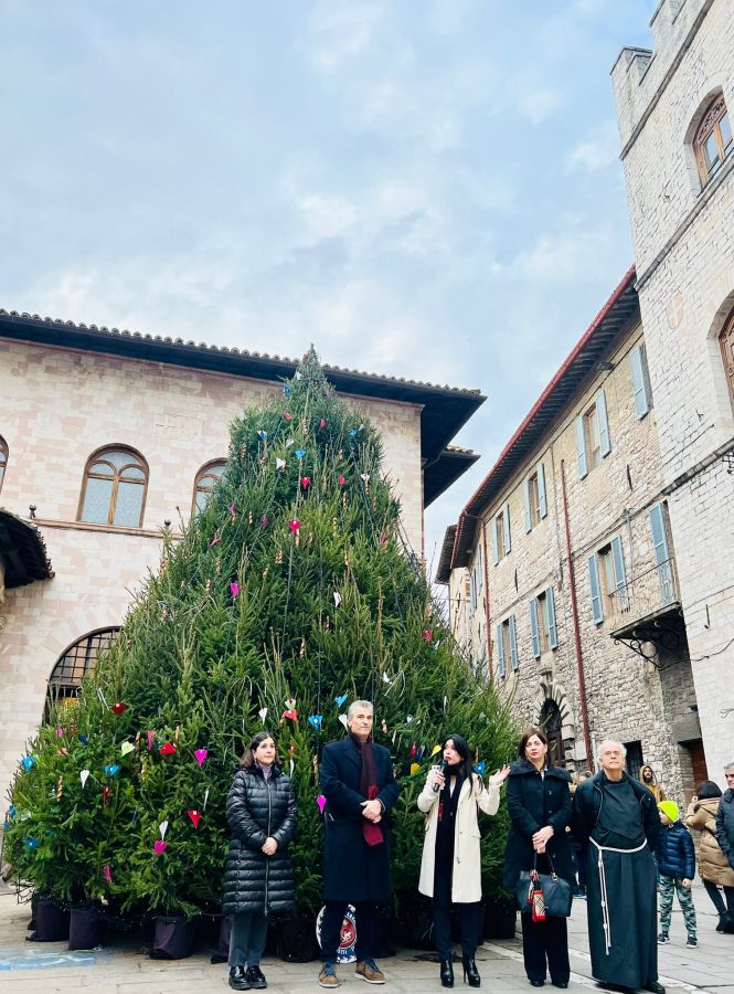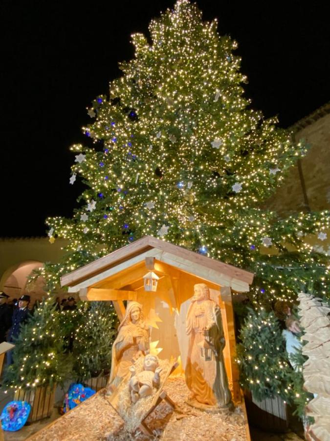 ASSISI (Perugia) – L’accensione del grande “Albero di alberi” in piazza del Comune, composto da 80 abeti che poi verranno piantumati e decorato da addobbi realizzati dai ragazzi dell’Istituto Serafico, ha dato il via al Natale ad Assisi che propone oltre 130 eventi fino all’8 gennaio, all’insegna della tradizione, dell’innovazione e dell’ecosostenibilità.