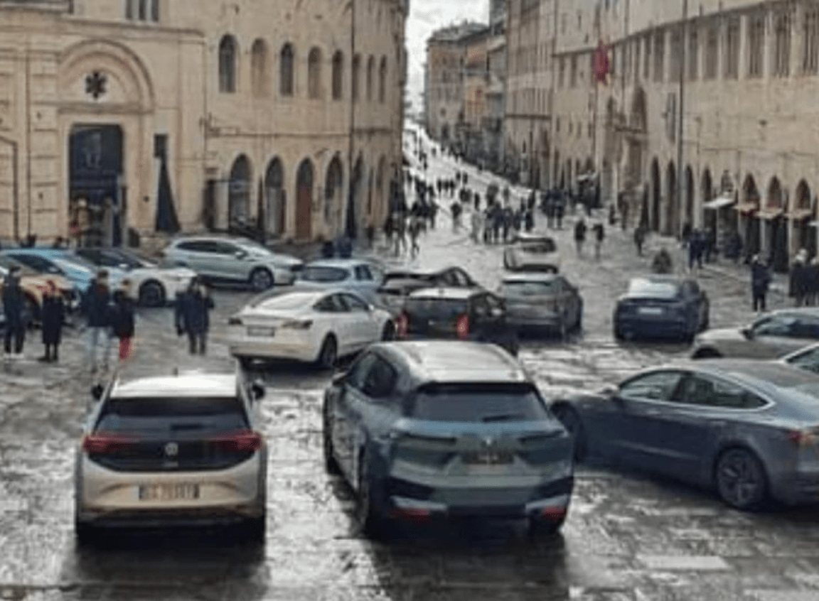 27 auto parcheggiate contemporaneamente a elegante “spina di pesce” tra Cattedrale e fontana maggiore non le avevo mai viste e non c’è n’è una sola che abbia un permesso visibile».