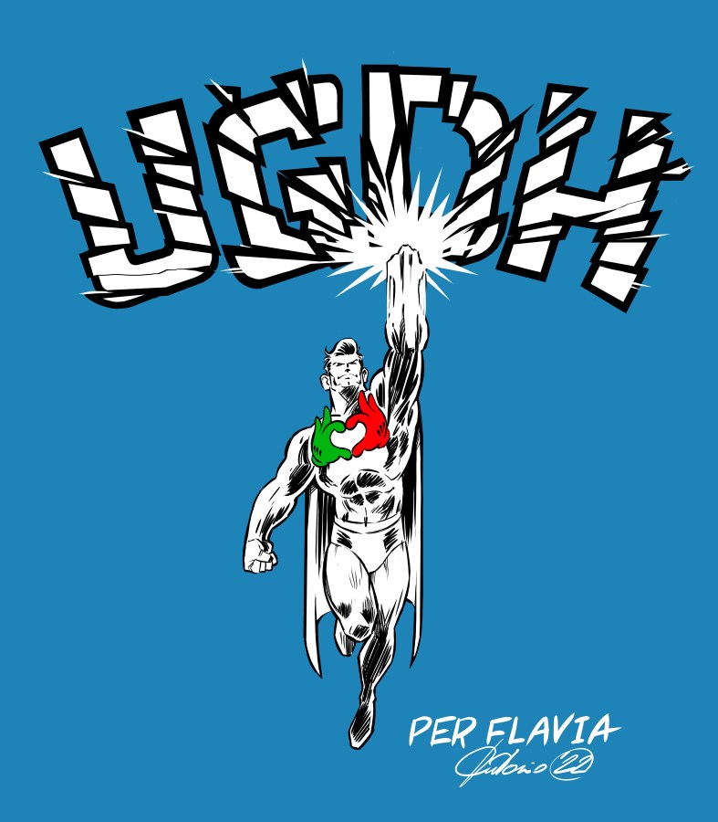 TERNI – Un supereroe paladino dell’associazione “Sosteniamo Terni”, di cui indossa sul petto l’effigie rossoverde, che con forza spezza la parola Ugdh, la malattia genetica rara che ha colpito Flavia. Dopo la presentazione del progetto e l’appello accorato alla cittadinanza, sta per essere lanciata al “super maglietta” per Flavia, ragazza di 12 anni ternana affetta da defict di UDP – glucoronato per mutazione del gene UGDH, una malattia genetico-metabolica scoperta nel 2019 e descritta a livello scientifico nel 2020. La maglietta nasce dall’idea di Piergiorgio, il papà di Flavia, che voleva comunicare con la forza e l’immediatezza del linguaggio dei fumetti la lotta contro la malattia, identificata con la mutazione del gene UGDH, e immaginava un personaggio che la colpisse con un pugno.