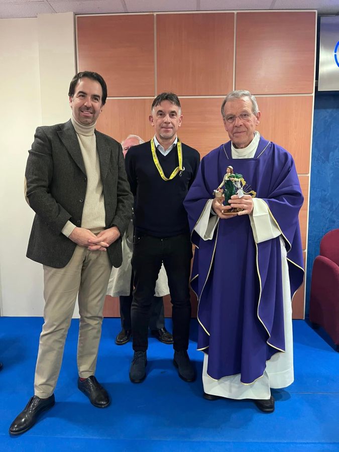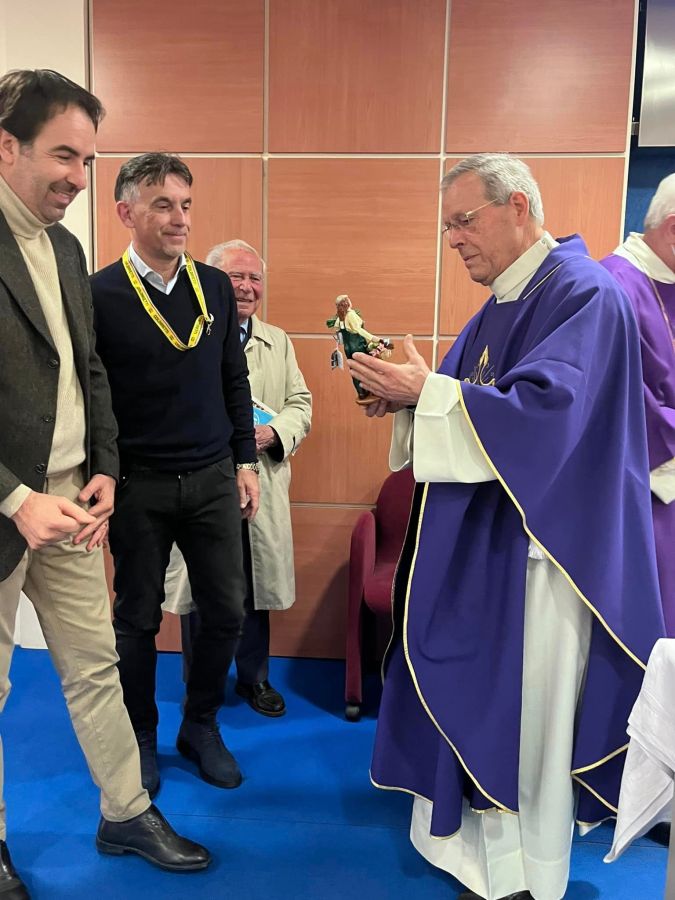 La cerimonia di consegna in dono del pregevole manufatto realizzato dal maestro artigiano leccese Claudio Riso alla Diocesi di Orvieto e Todi nelle mani del vescovo Gualtiero Sigismondi da parte del direttore di Confartigianato Terni Michele Medori e del Presidente di Coldiretti Terni Paolo Lanzi, si è svolta presso la sede di Confartigianato di Todi.