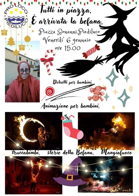 TERNI- Un pomeriggio di festa il 6 gennaio a partire dalle ore 15 per la befana. La ProLoco di Piediluco ha organizzato “tutti in piazza per l’arrivo della befana”.