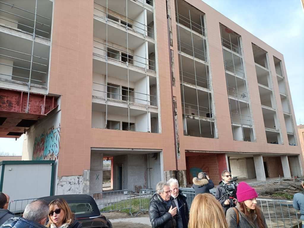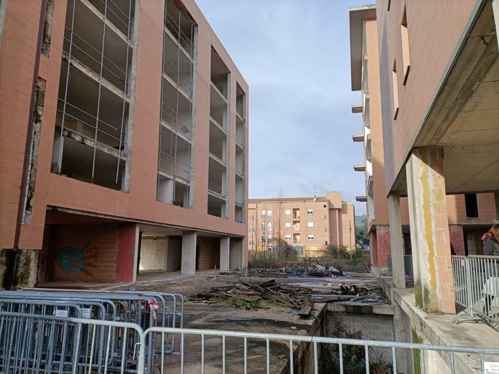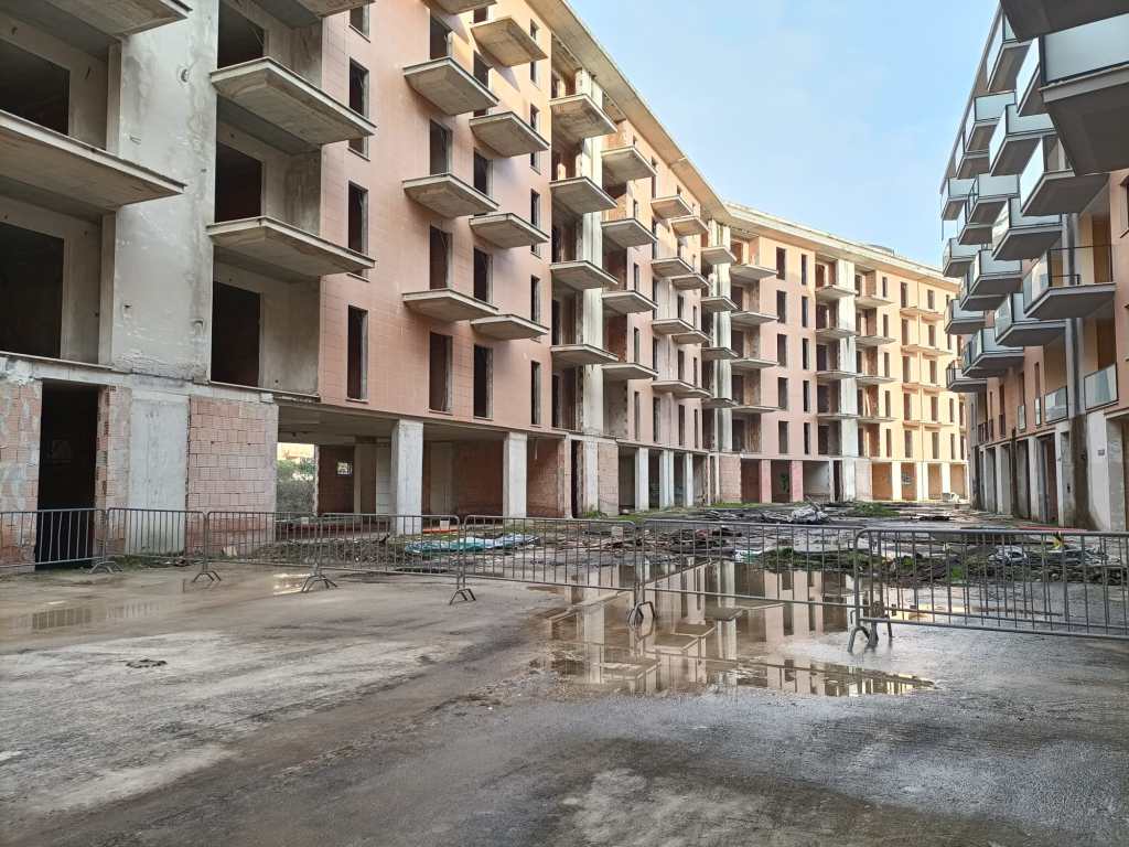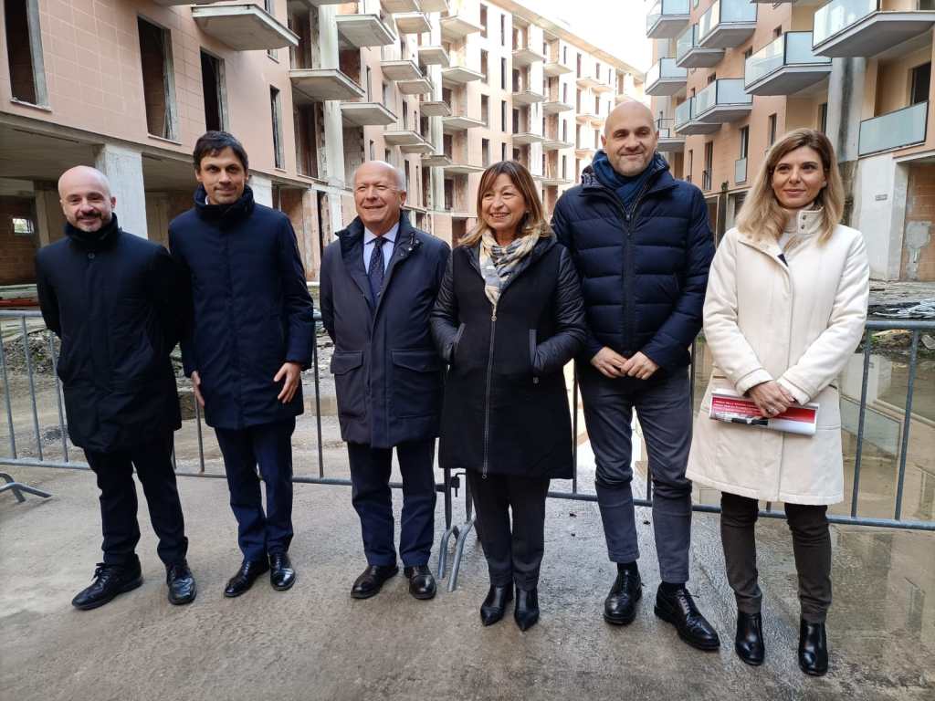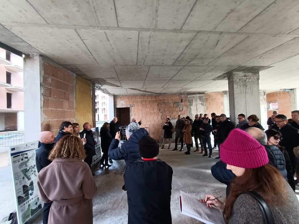 PERUGIA – L’area ex Palazzetti ha gridato vendetta per tanti anni. Luogo di degrado, criminalità, furti, bivacchi, è stata oggetto di sequestro e dissequestro ma ora, dopo undici anni dall’inchiesta Apogeo che ha bloccato i lavori di costruzione, sta per acquisire una nuova vita diventando un ecoquartiere degno della città. Entro il primo semestre del 2026 la ferita verrà sanata grazie ad un progetto di riqualificazione dell’area, che si inserisce nell’ambito del progetto PINQuA – Programma Innovativo Nazionale per la Qualità dell’Abitare. Ad acquistare il grande complesso edilizio è stata Ater Umbria, l’agenzia regionale per l’edilizia residenziale, per un importo di circa 5 milioni e mezzo, dopo una complessa trattativa con la curatela fallimentare. I lavori che verranno effettuati sono stati illustrati nella mattina di venerdì 13 gennaio all’interno dell’area in via Adriatica dove si trovano i mastodontici edifici.