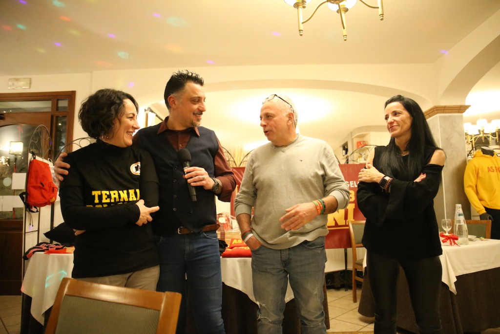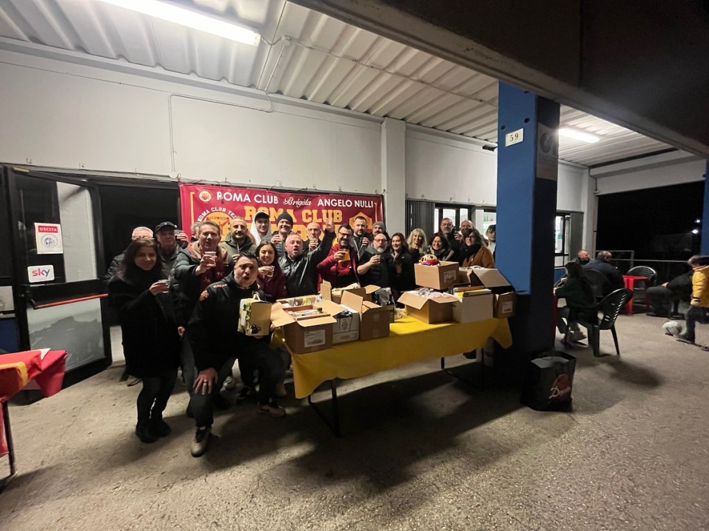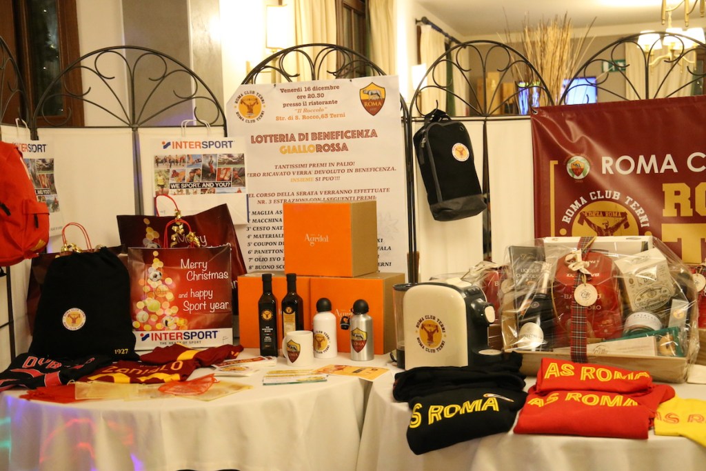 TERNI – Il Roma Club Terni – Brigata Angelo Nulli, nato a settembre del 2022 dalla passione calcistica, ma con lo scopo e l’obiettivo di fare del bene dove possibile, cresce sempre più. Superati di gran lunga i cento iscritti, in occasione delle Festività Natalizie, ha consegnato in città i primi regali, frutto di diverse raccolte fondi. Lo scorso 16 dicembre, al ristorante Il Roccolo, è andata in scena la prima cena di beneficenza del Club alla quale hanno participato quasi 100 persone. L’obiettivo della cena, oltre a festeggiare insieme il Natale, era quello di raccogliere fondi da destinare alla famiglia di Angelo Nulli (la sua compagna Alessandra e sua figlia Sara), all’associazione Il sogno di Rebecca e all’associazione I Pagliacci. Nel corso della serata, allietata dalla musica di Claudia J. Pompei, si è svolta una lotteria di beneficenza con oltre 30 premi, tra cui maglie originali della Roma, macchine del caffè e bottiglie d’olio del territorio ternano con il logo del Roma Club Terni.